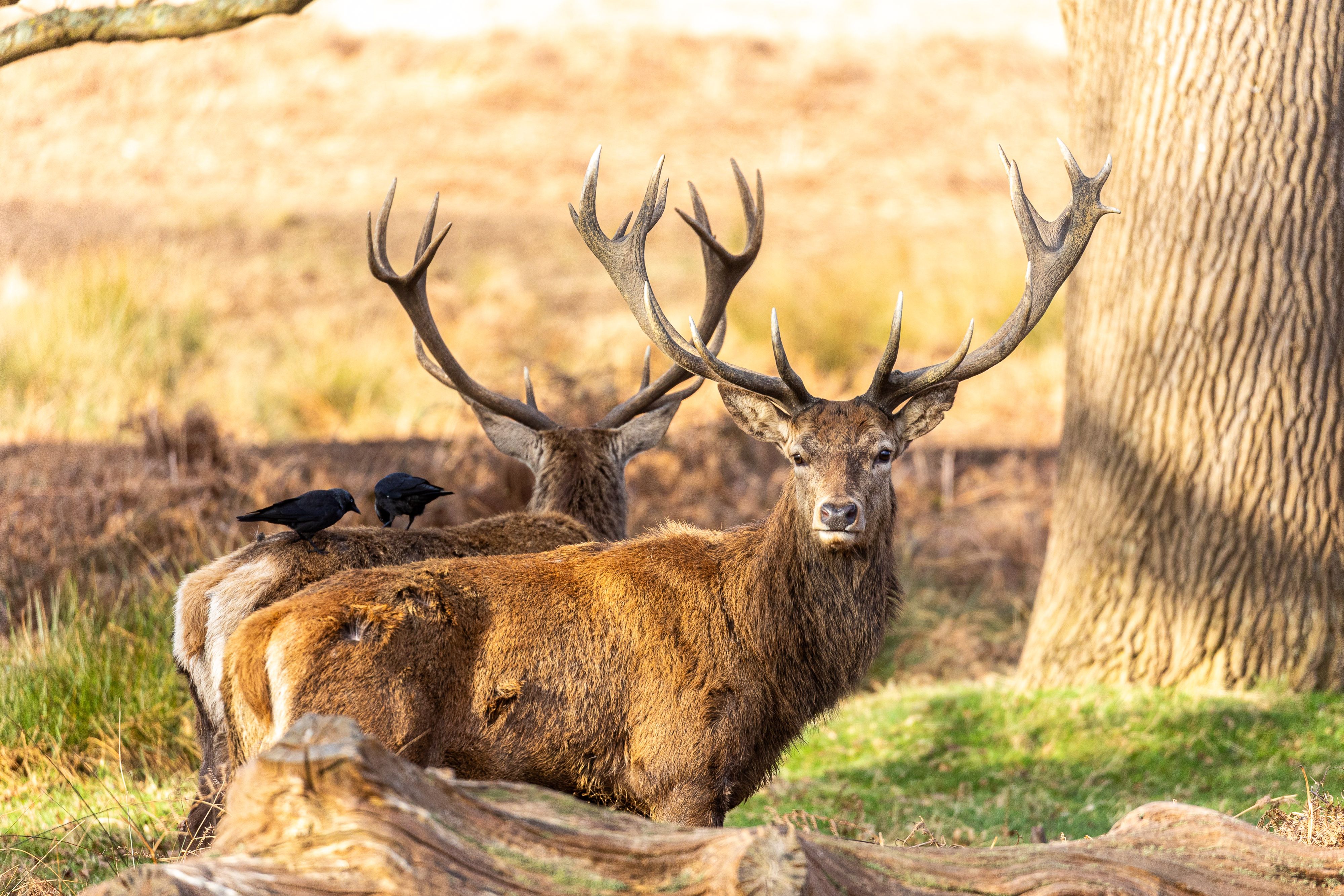 Stags relax in the early morning sunshine in Richmond Park southwest London on March 16, 2025. (Photo by Alex Lentati/London News Pictures)
