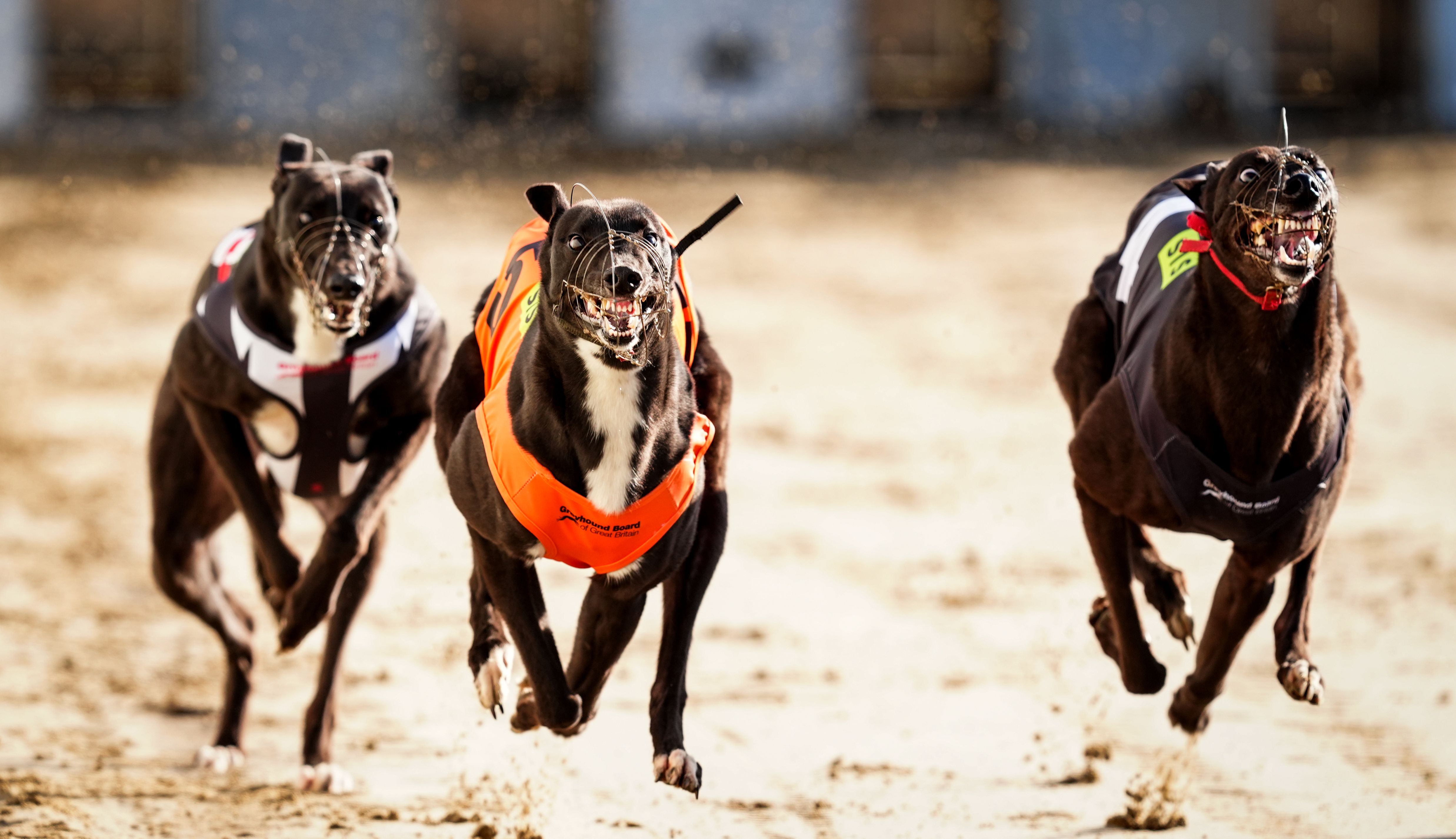 Greyhounds racing at Valley Greyhound Stadium in Ystrad Mynach, Caerphilly County Borough, Wales, UK on Thursday, March 13, 2025. Nestled between the Rhymney River and the A469 at Ystrad Mynach, four miles from the historic town of Caerphilly, a small but loyal band of followers have made their way to the Valley Greyhound Stadium for action woven into Wales' sporting fabric. (Photo by David Davies/PA Wire)