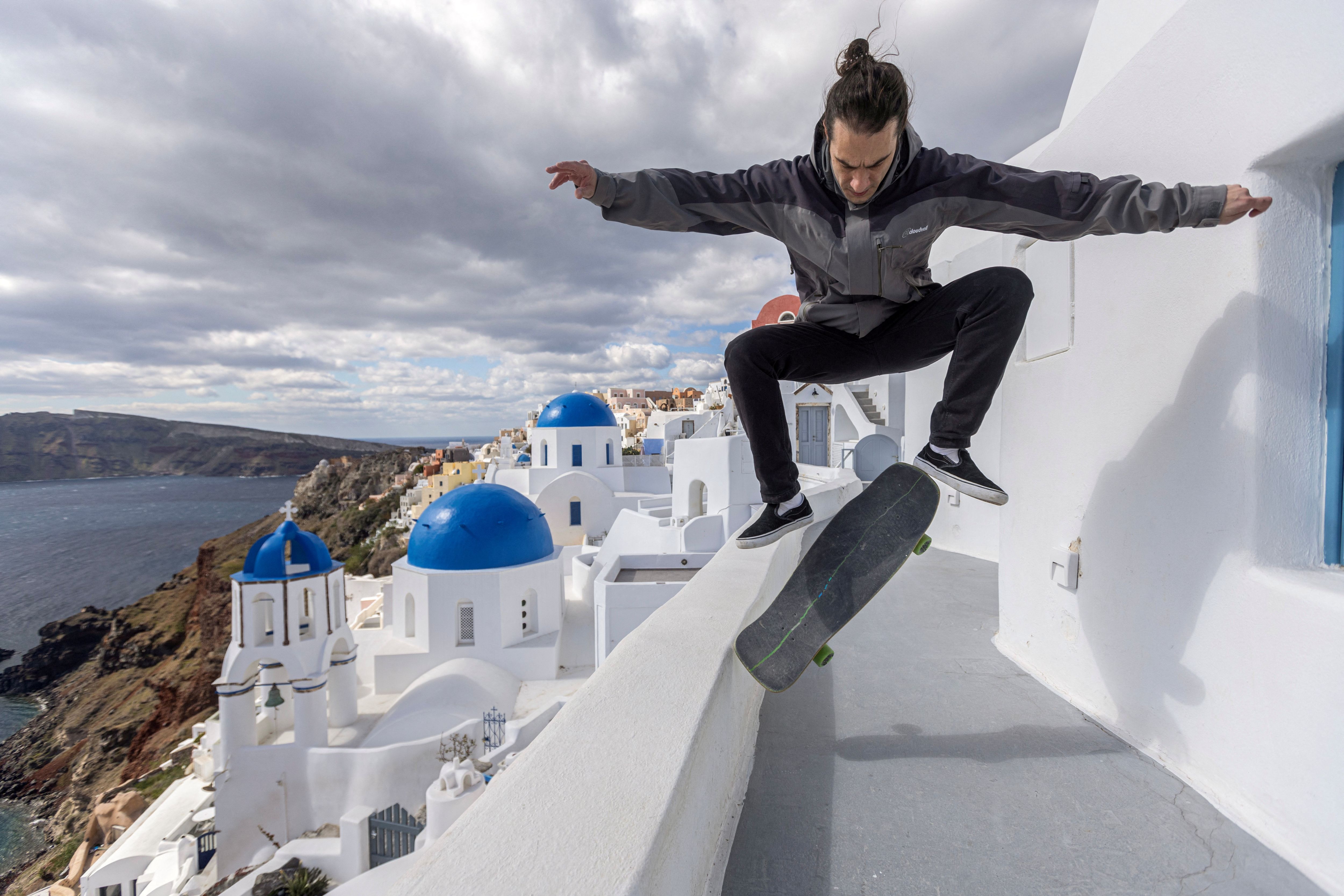 Local shopowner and amateur skateboarder Stavros Katsaros, 34, skates on the empty narrow streets of the village of Oia, as the seismic activity continues, on the island of Santorini, Greece, on February 22, 2025. (Photo by Nicolas Economou/Reuters)