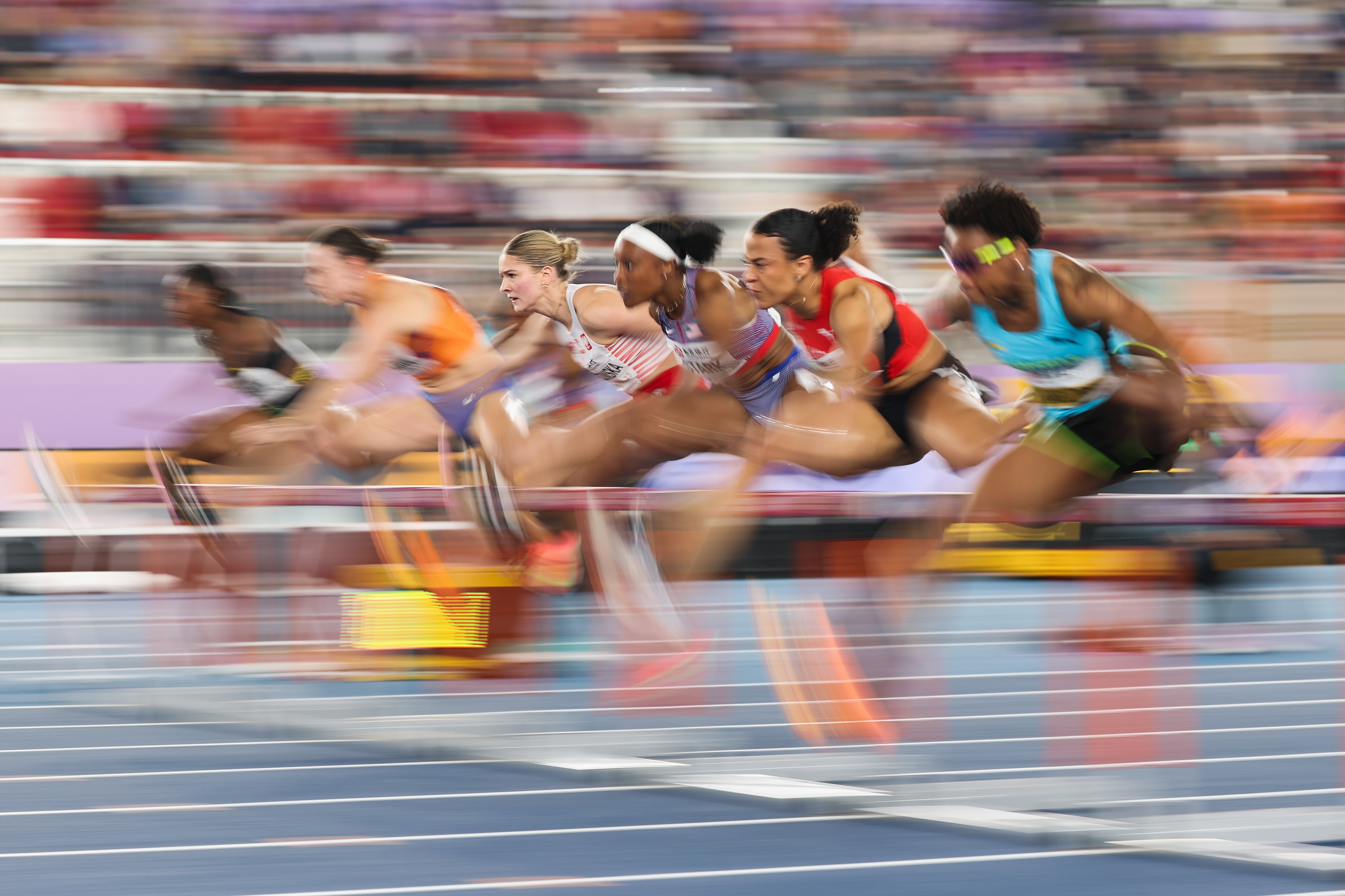 Pia Skrzyszowska of Team Poland (3nd-L) competes in the Women's 60 Metres Hurdles final on day three of the World Athletics Indoor Championships Nanjing 2025 at Nanjing Youth Olympic Games Sports Park on March 23, 2025 in Nanjing, China. (Photo by Lintao Zhang/Getty Images)