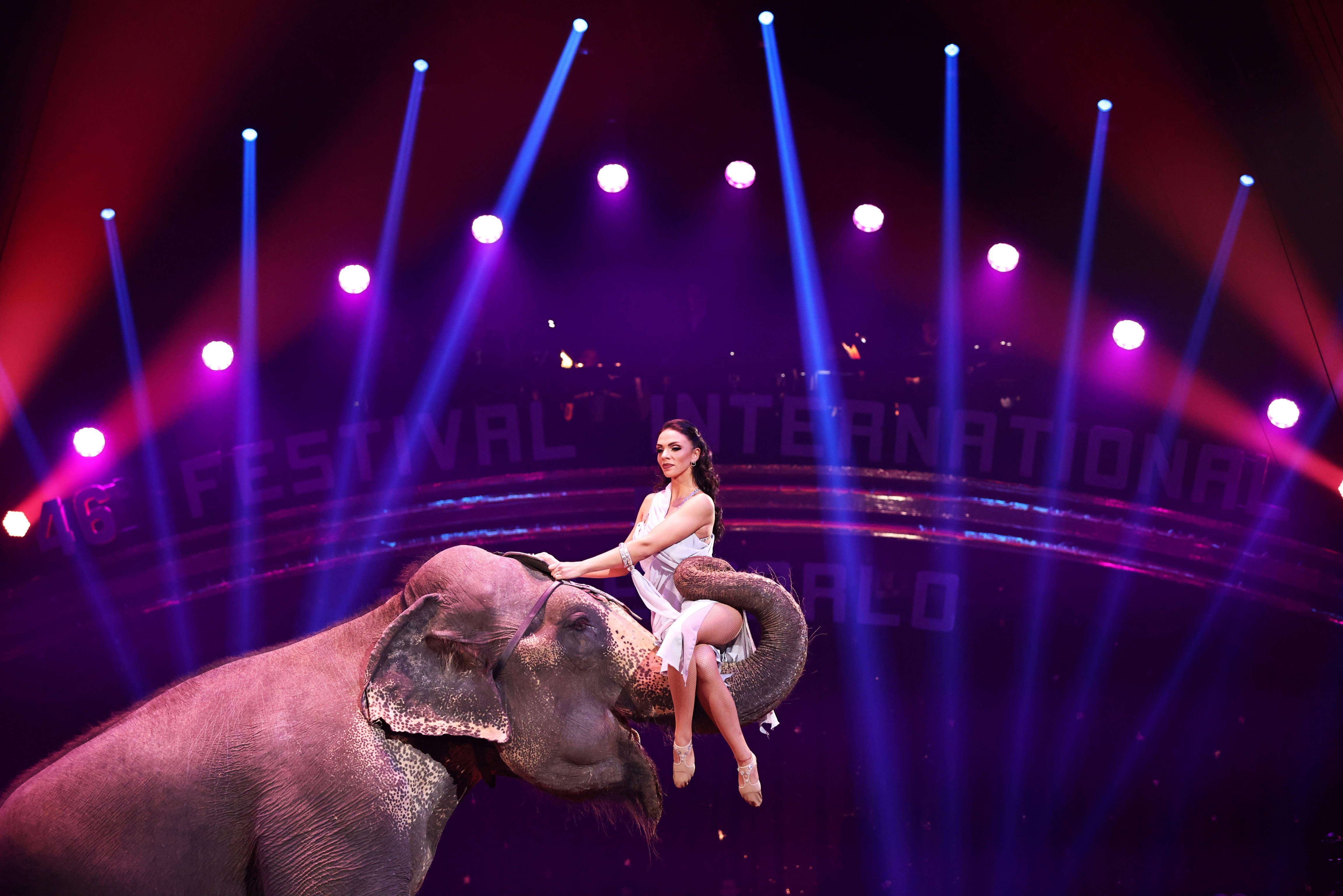 An acrobat performs at the 46th International Circus Festival of Monte-Carlo, Monaco on January 20, 2024. The event kicked off here on Friday and will last to Jan. 28. (Photo by Gao Jing/Xinhua/Alamy Live News)