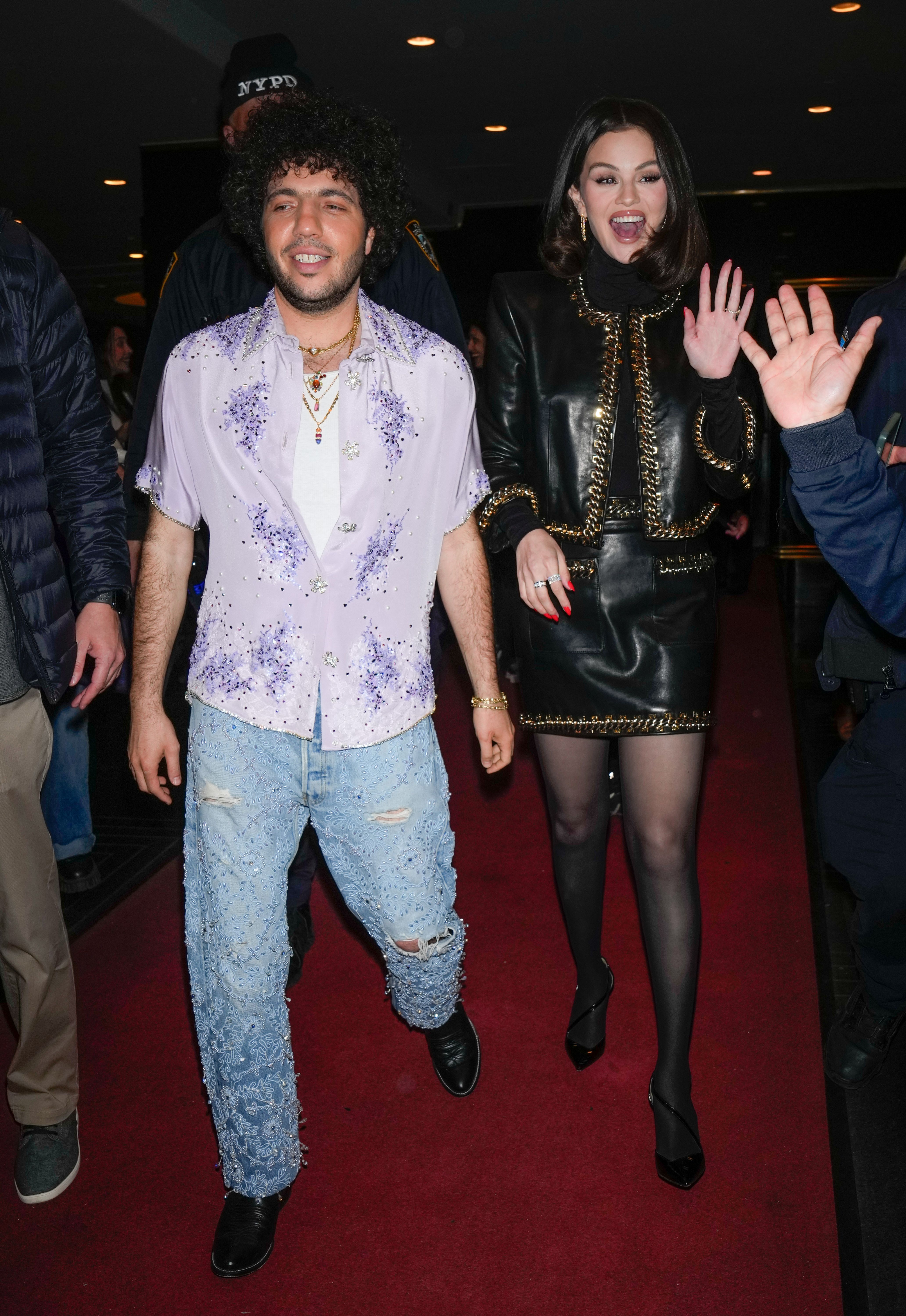 American record producer and songwriter Benny Blanco (L) and American actress and singer Selena Gomez are seen on March 20, 2025 in New York City. (Photo by XNY/Star Max/GC Images)