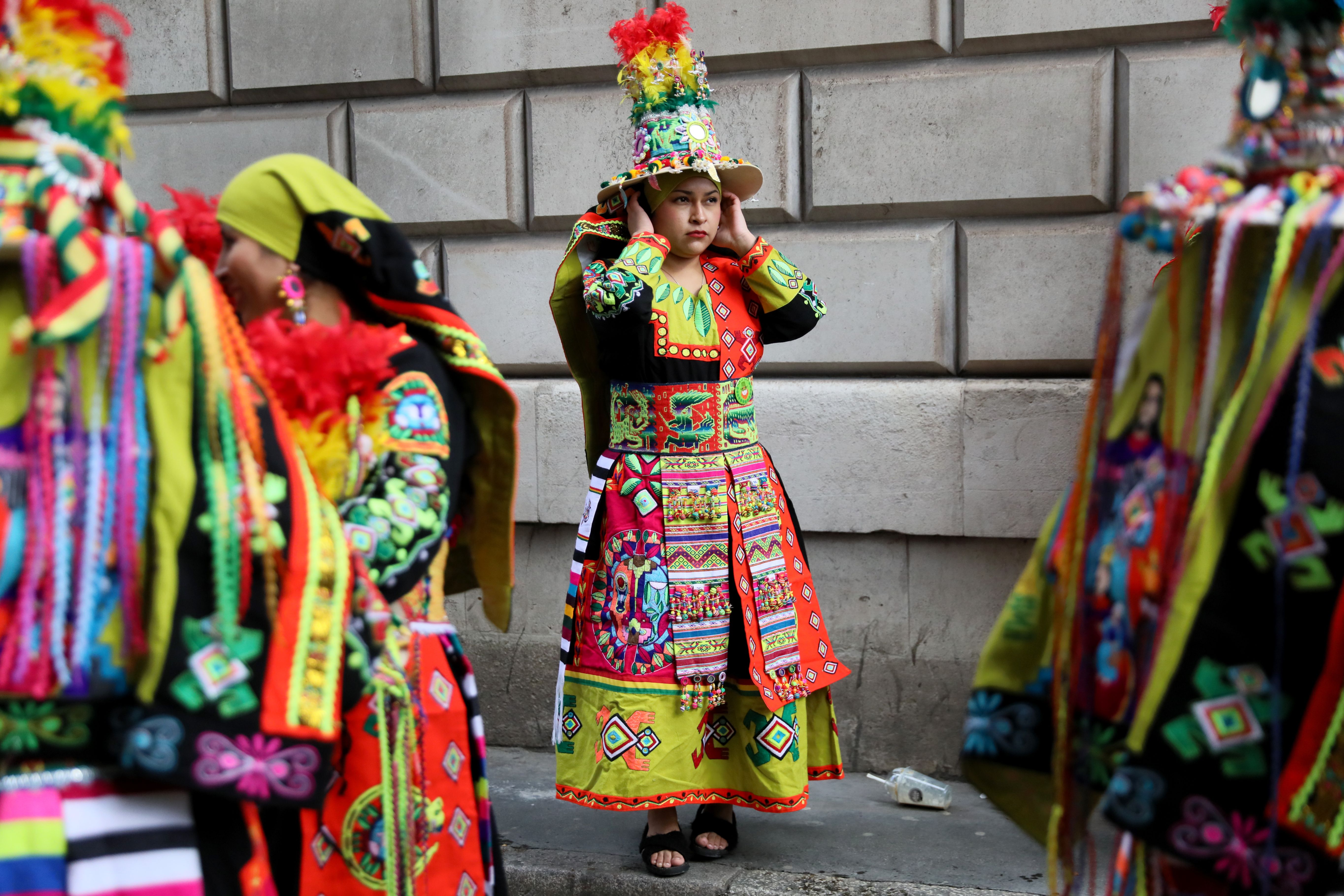 A performer in costume during London's St. Patrick's Day Festival on March 16, 2025 in London, England. The Mayor of London's St Patrick's Festival celebrates contributions of the Irish community in London, with this year's theme focusing on sustainability and greening Britain's capital city. St. Patrick's Day is marked annually on March 17, the traditional death date of Ireland's patron saint, and has become a celebration of Irish culture and heritage around the world. (Photo by Alishia Abodunde/Getty Images)