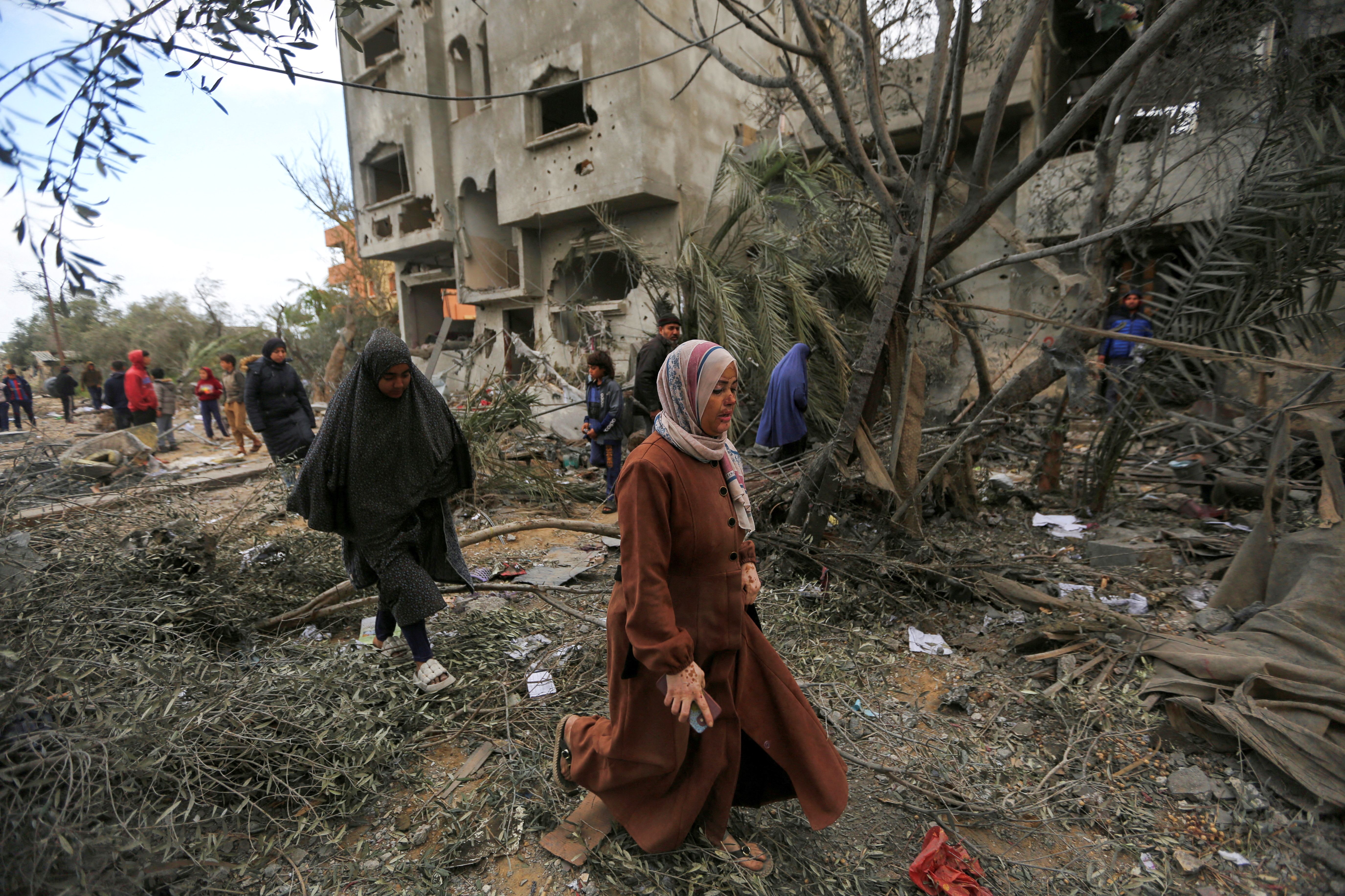 Palestinians inspect the site of an Israeli strike on a house, in Khan Younis in the southern Gaza Strip on March 20, 2025. (Photo by Hatem Khaled/Reuters)