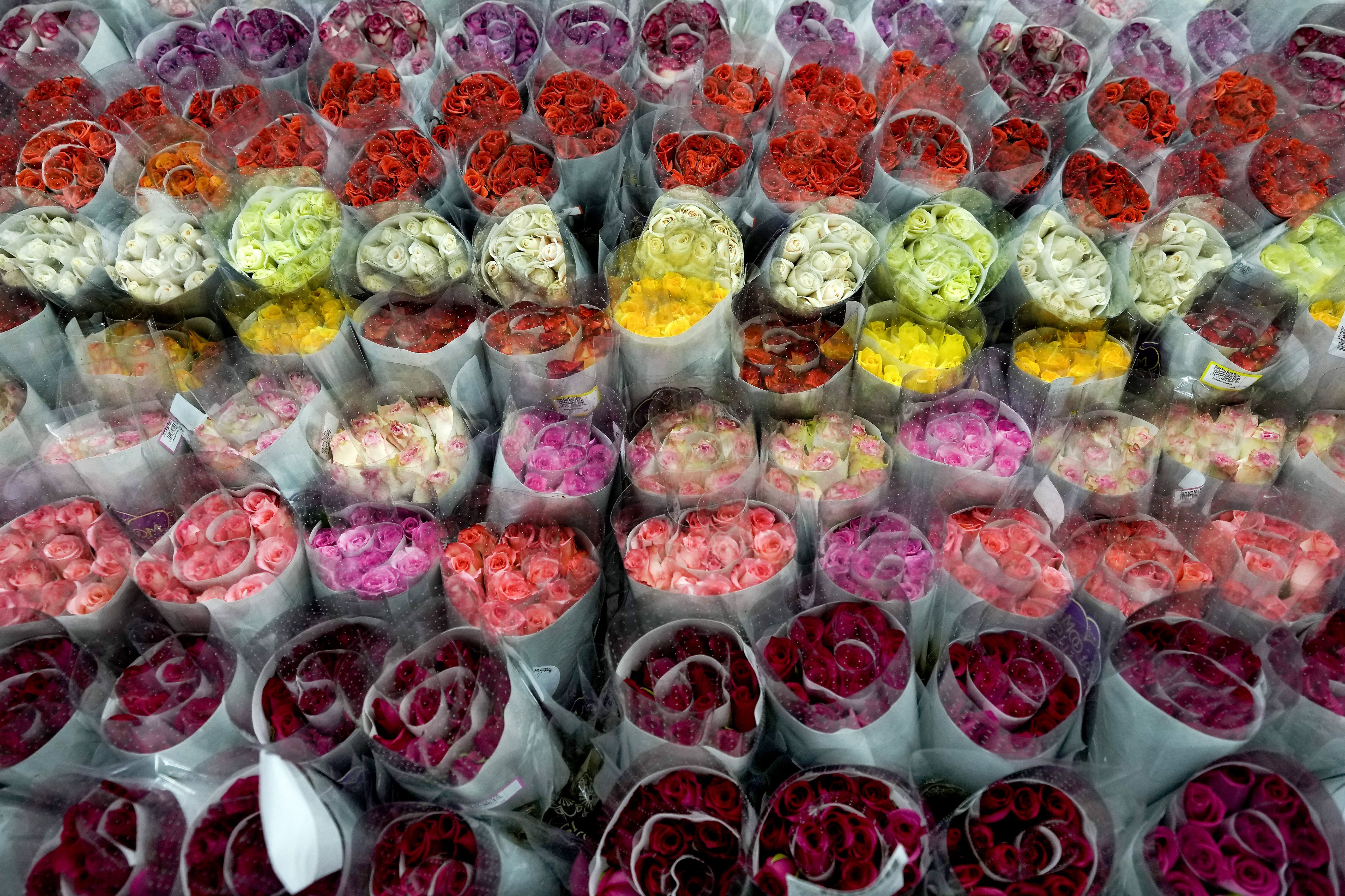 Roses are ready to be shipped to the U.S. ahead of Valentine's Day, the biggest holiday of the year for fresh-cut flower sales, at the Mongibello flower company in Chia, north of Bogota, Colombia, Wednesday, January 31, 2024. (Photo by Fernando Vergara/AP Photo)