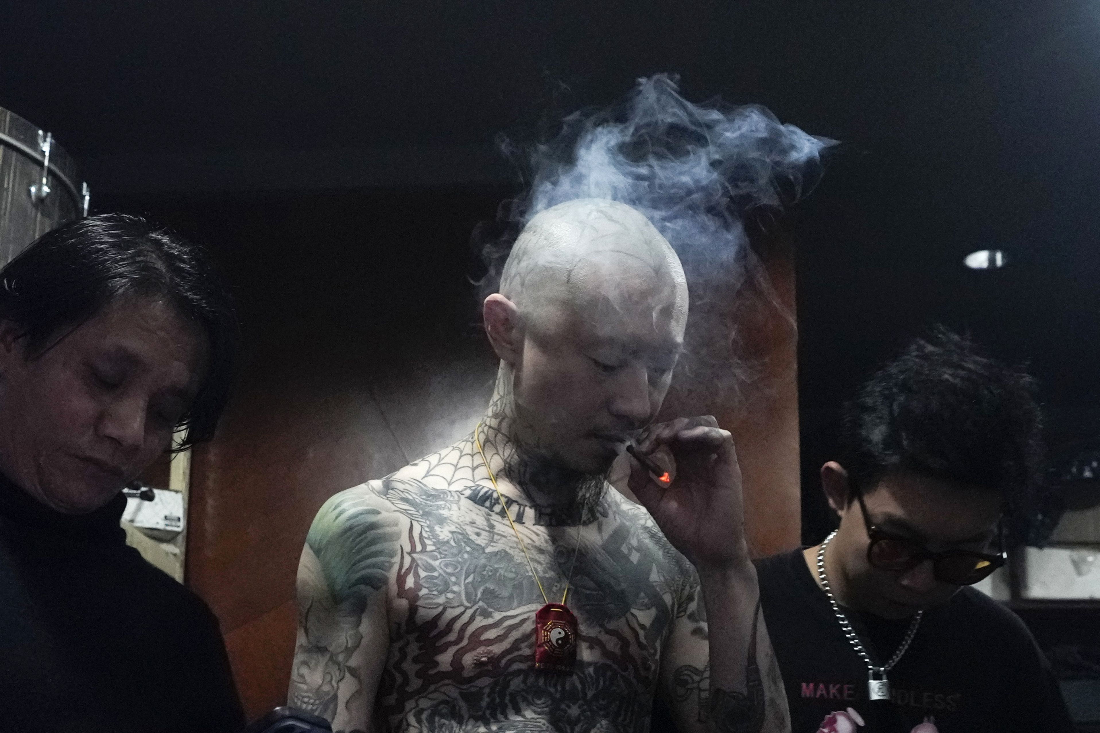 A Chinese punk rocker smokes a cigarette as he waits backstage during a punk festival in Hangzhou, China, Friday, January 17, 2025. (Photo by Aaron Favila/AP Photo)