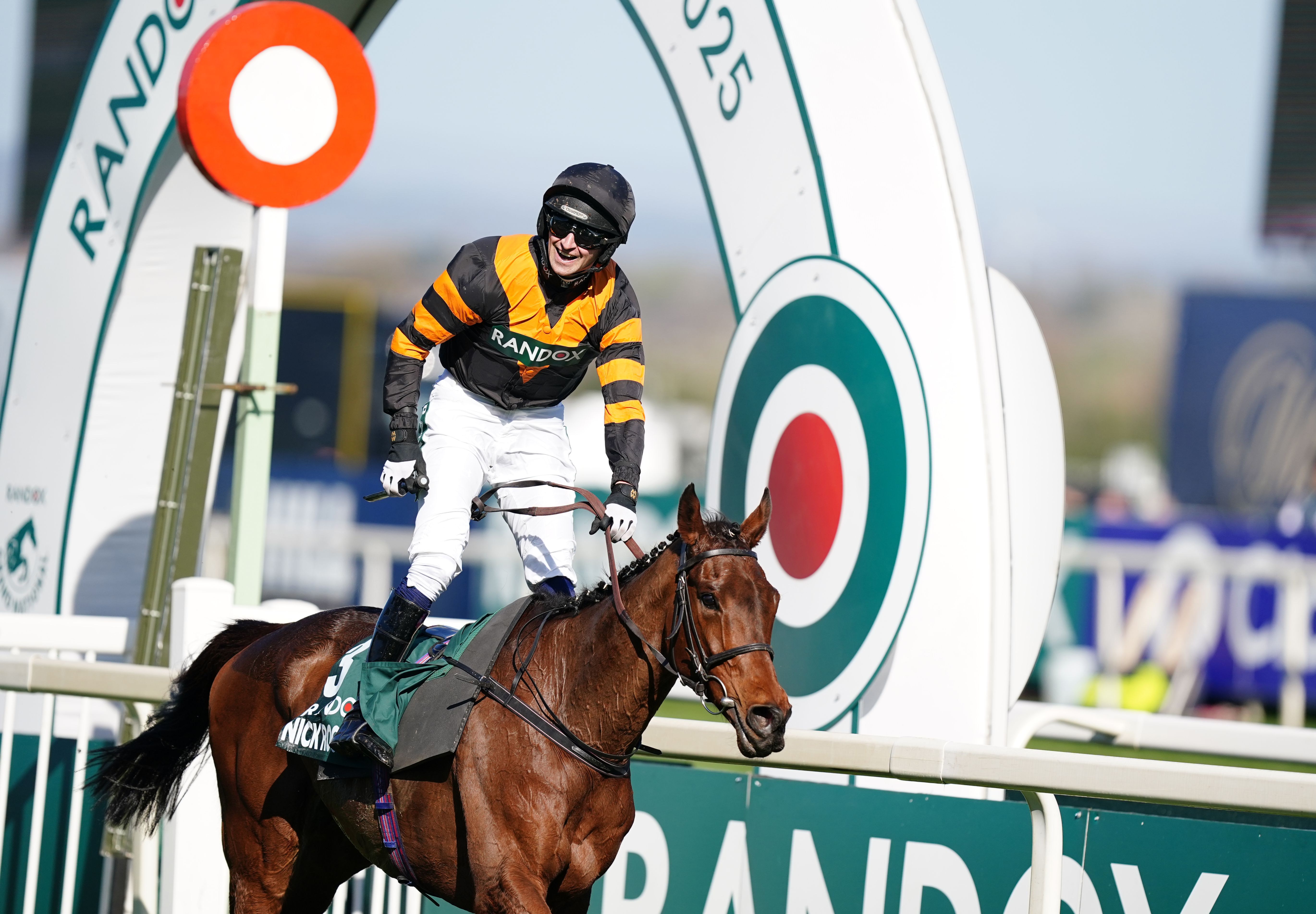 Patrick Mullins aboard Nick Rockett after winning the Randox Grand National on day three of the Randox Grand National Festival at Aintree Racecourse, Liverpool, UK on Saturday, April 5, 2025. (Photo by Mike Egerton/PA Wire)