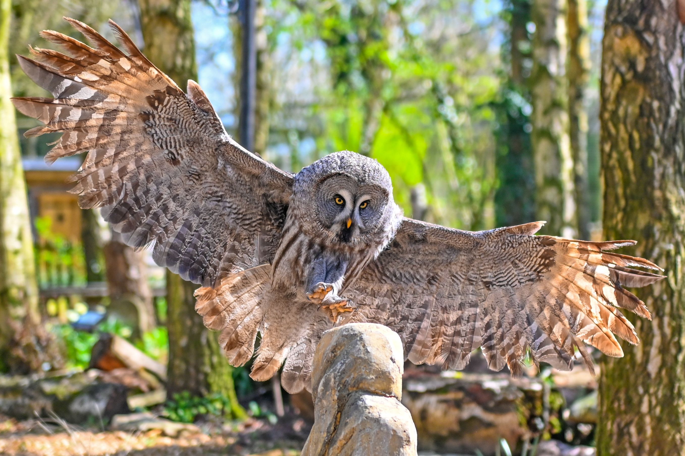 Mozzarella the owl getting ready for the start of public shows at the Hawk Conservancy Trust in Andover, Hampshire, UK on April 4, 2025, which begin on Saturday. (Photo by Andrew Croft/Solent News & Photo Agency)