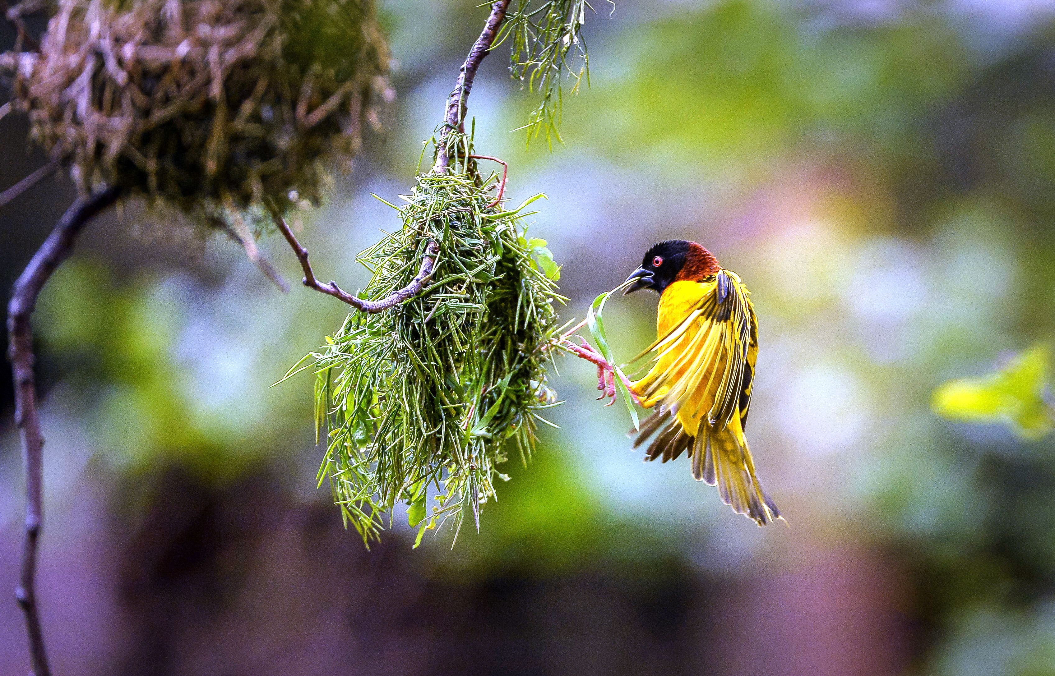 A weaver bird settles on March 30, 2025 into Chester Zoo’s new Heart of Africa zone, which recreates a variety of grassland habitats and will be home to 57 African species. (Photo by Steve Rawlins/Chester ZOO)