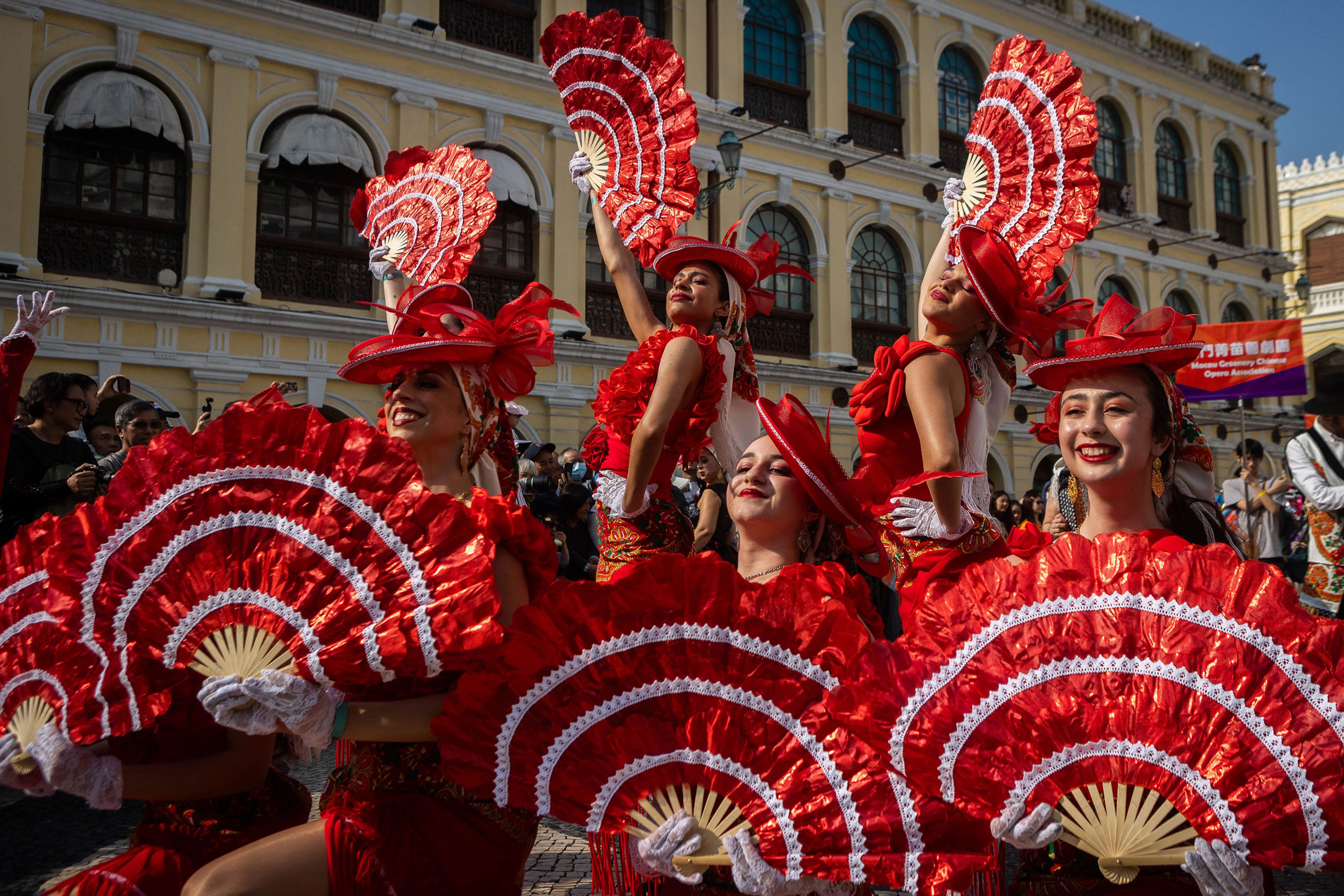 People participate in the Macao International Parade on Sunday, March 23, 2025. (Photo by Eduardo Leal/AFP Photo)