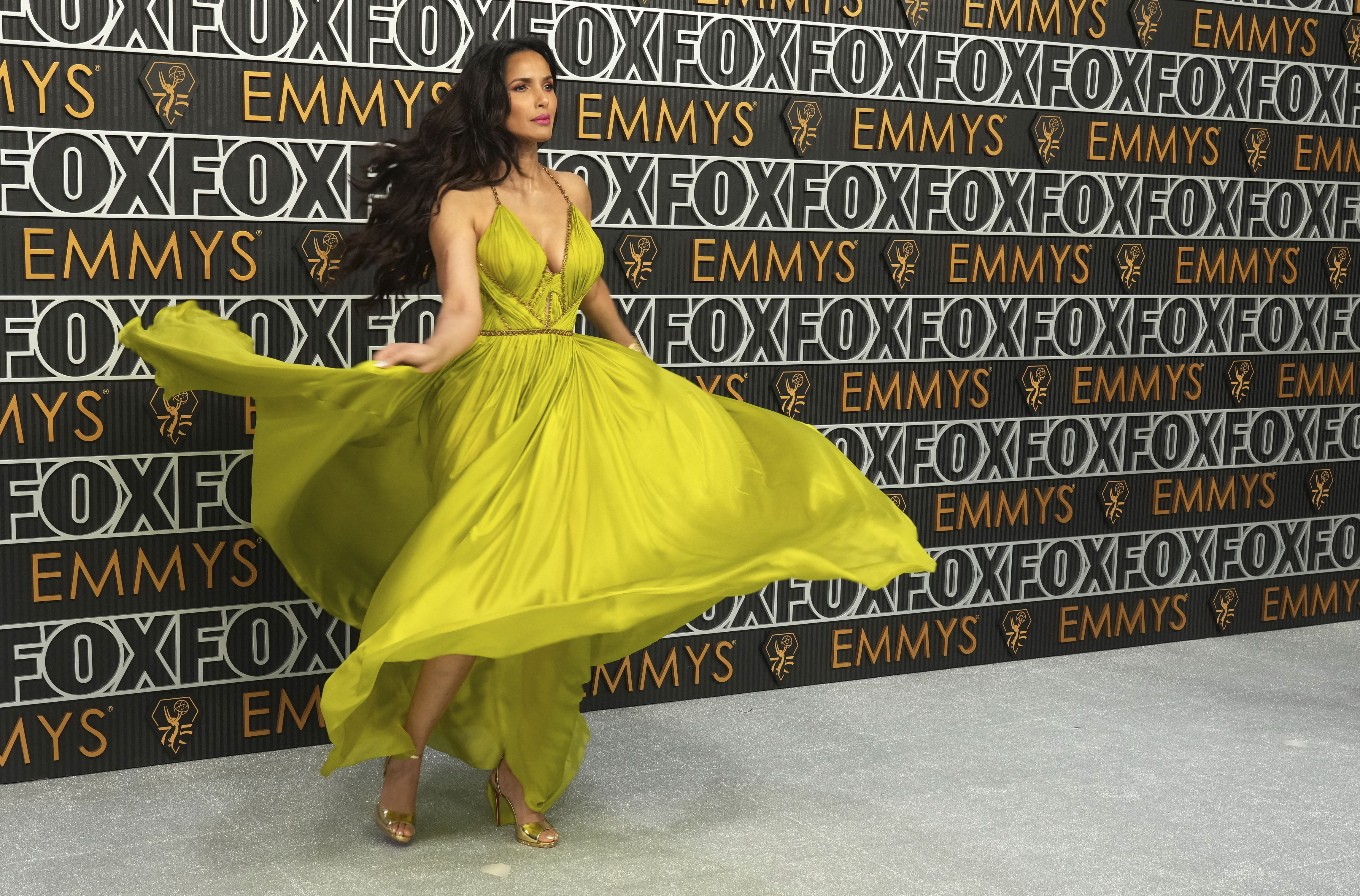 Indian-American writer and model Padma Lakshmi poses for a Red Carpet portrait at the 75th Emmy Awards on Monday, January 15, 2024 at the Peacock Theater in Los Angeles. (Photo by Jordan Strauss/Invision for the Television Academy/AP Images)
