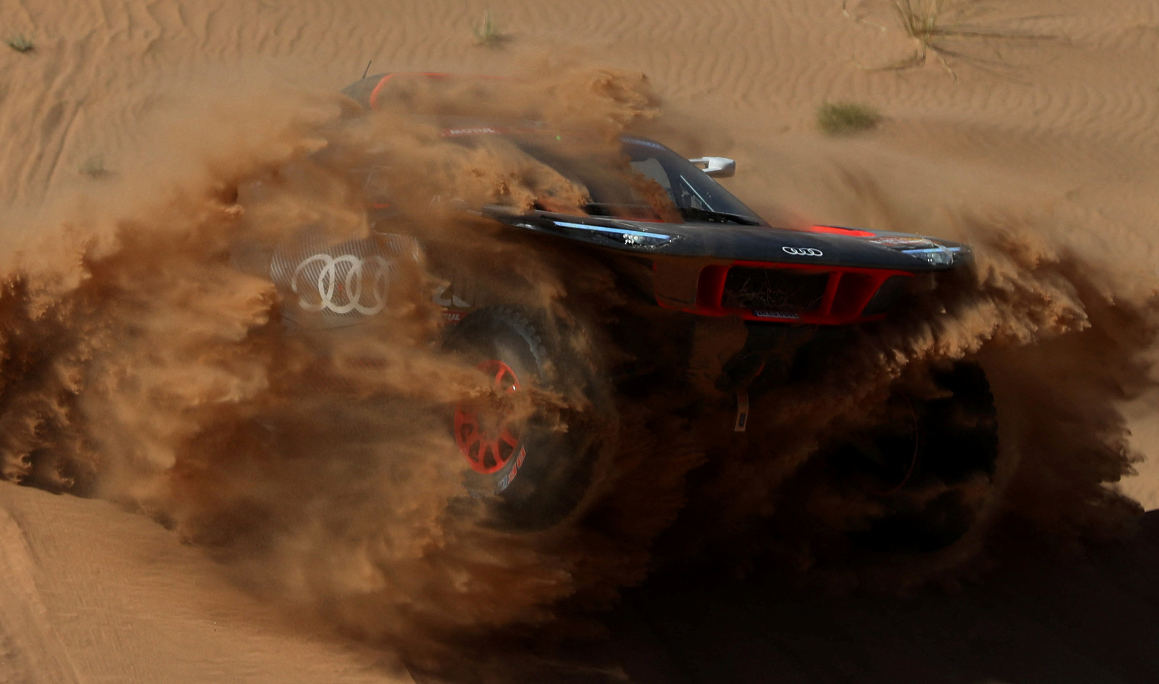 Team Audi Sport's Stephane Peterhansel and co-driver Edouard Boulanger in action during stage 3 of the Dakar Rally in Saudi Arabia on January 8, 2023. (Photo by Hamad I Mohammed/Reuters)