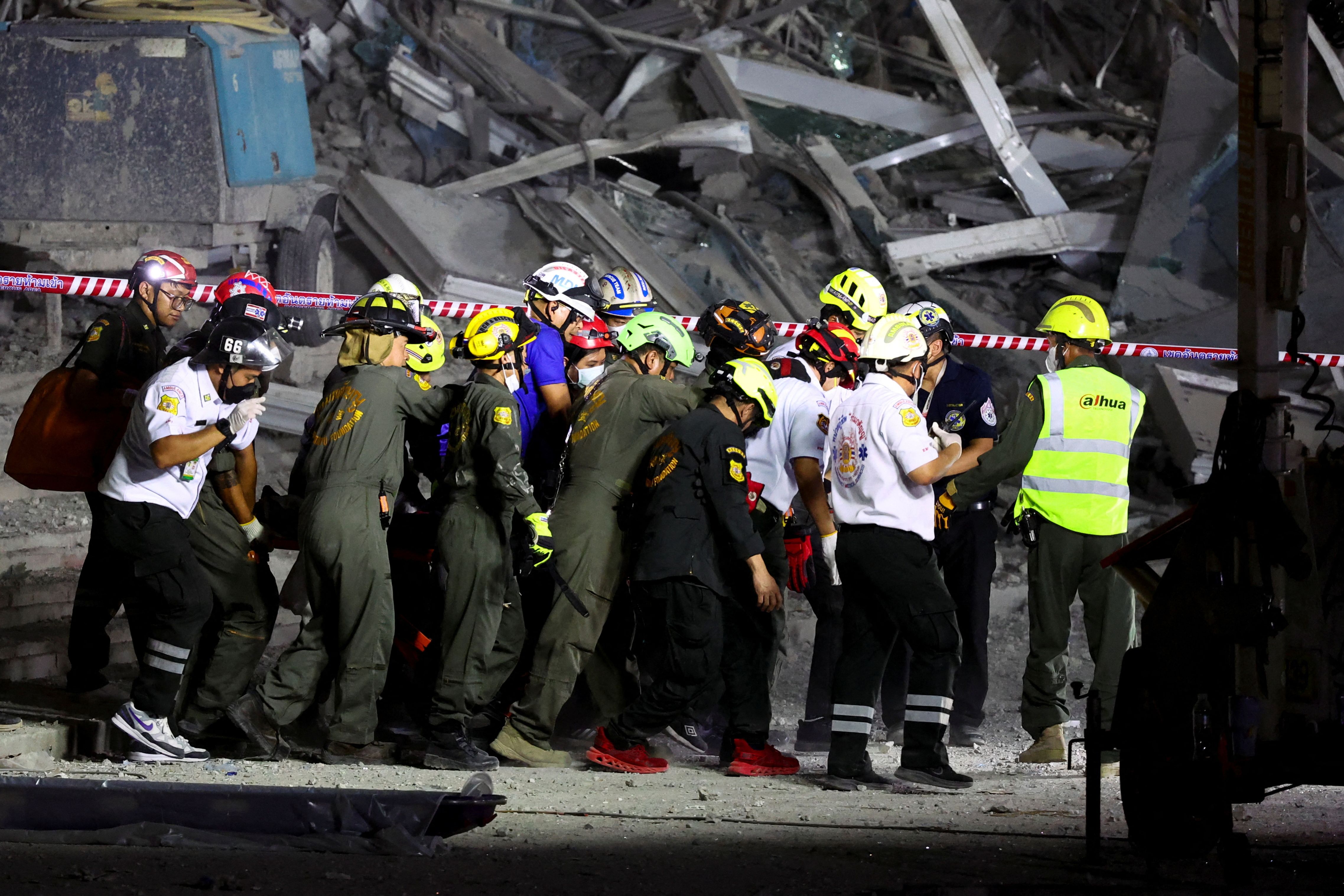 Rescue personnel peform CPR on a casualty who was rescued from the site of a building that collapsed in Bangkok, Thailand, on March 28, 2025. (Photo by Athit Perawongmetha/Reuters)