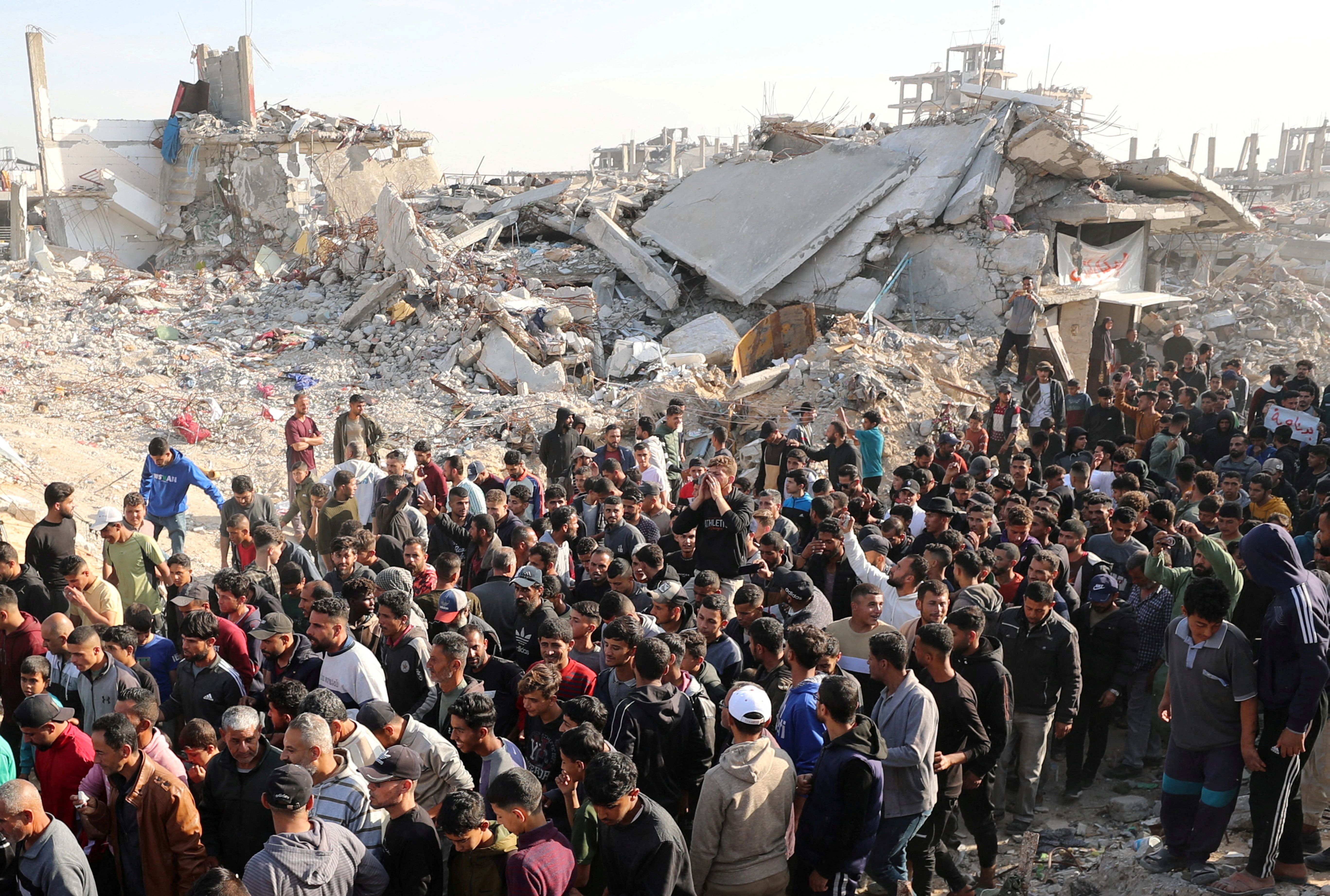 Palestinians protest to demand an end to war, chanting anti-Hamas slogans, in Beit Lahiya in the northern Gaza Strip on March 26, 2025. (Photo by Reuters/Stringer)