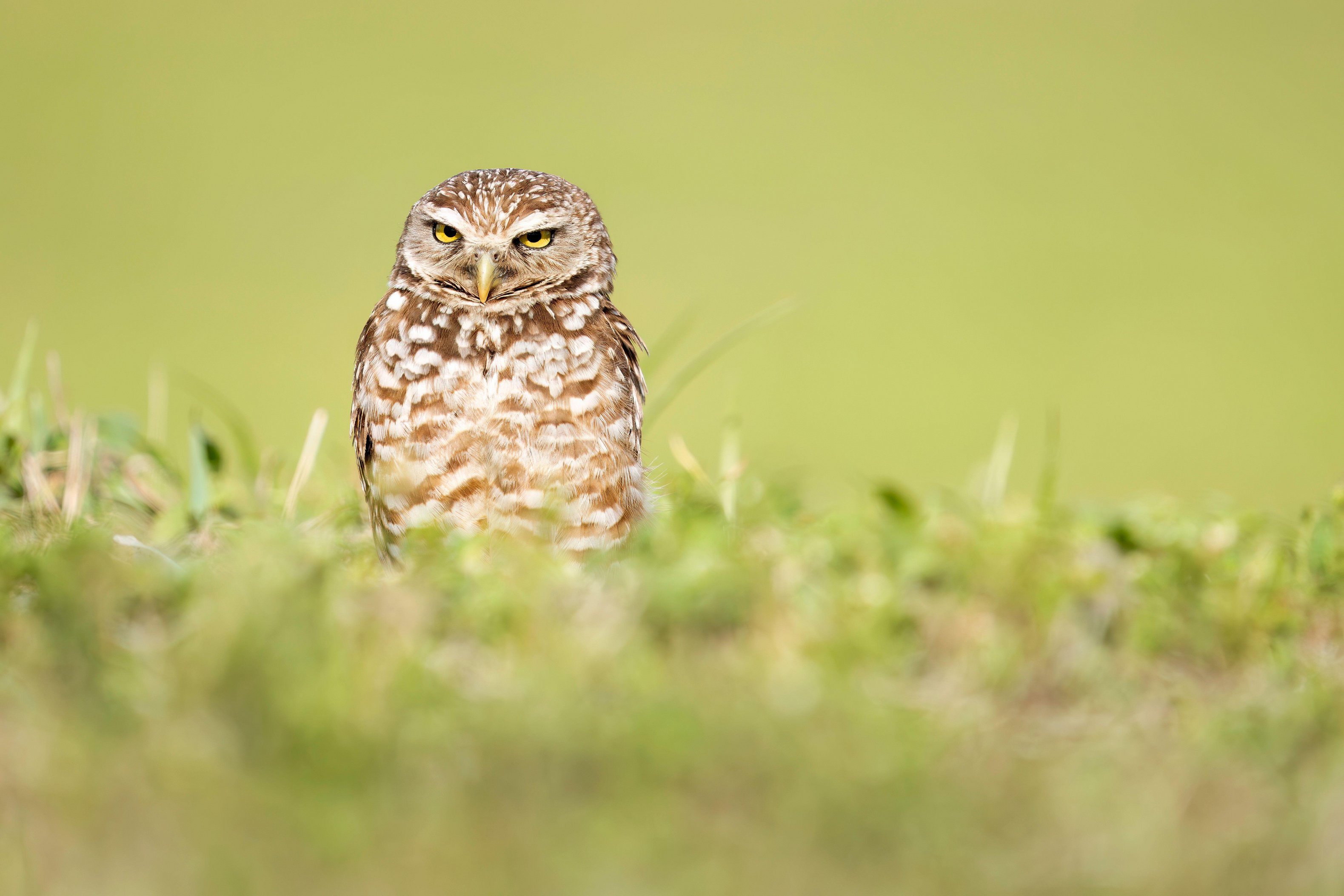 A burrowing owl, just 9 inches tall, keeps watch near its nest in Davie, Florida, on April 9, 2025. (Photo by Ronen Tivony/ZUMA Press Wire/Alamy Live News)