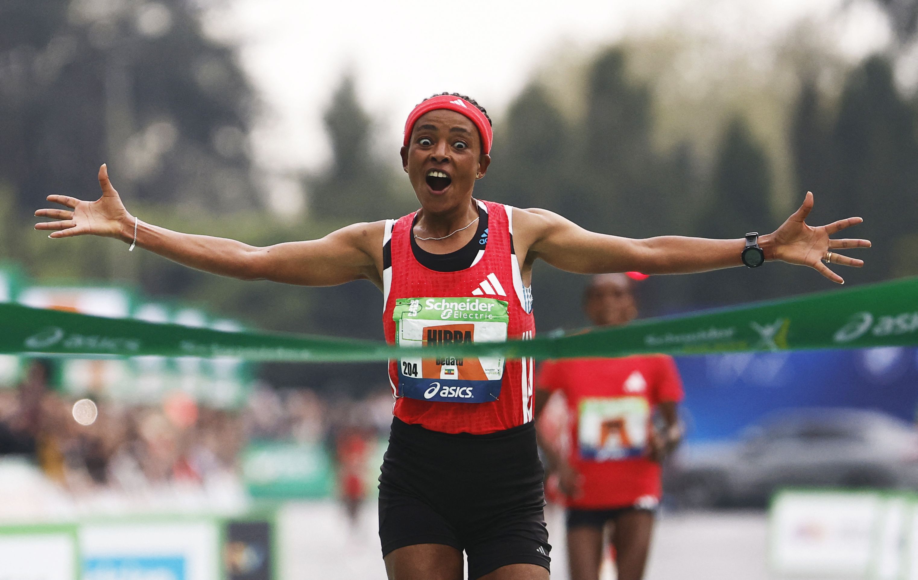 Bedatu Hirpa, 25, from Ethiopia, wins the Paris Marathon women’s race on Sunday, April 13, 2025. (Photo by Stephanie Lecocq/Reuters)