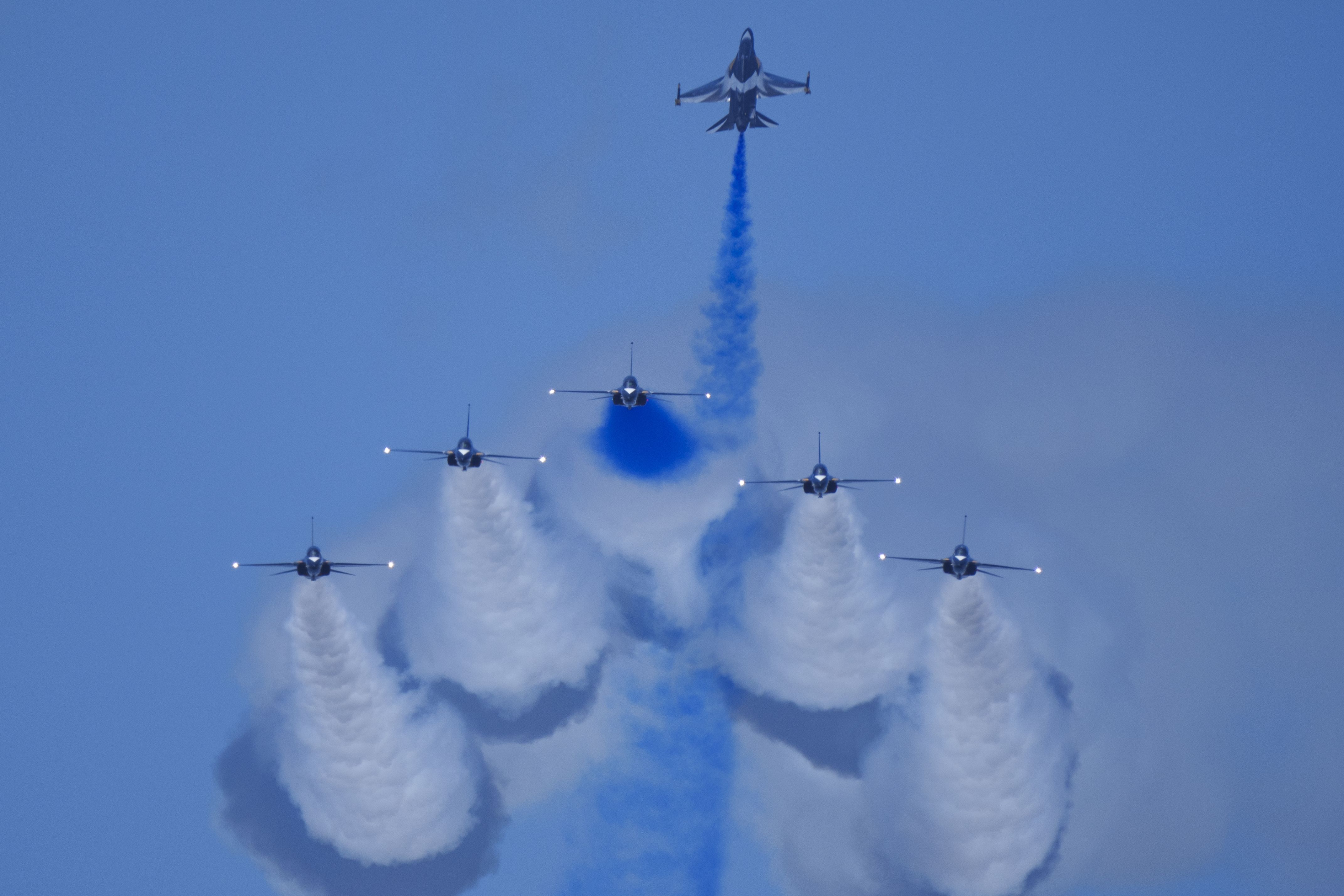 South Korean Air Force's Black Eagles aerobatic team performs during the first day of the Singapore Airshow in Singapore, Tuesday, February 20, 2024. (Photo by Vincent Thian/AP Photo)