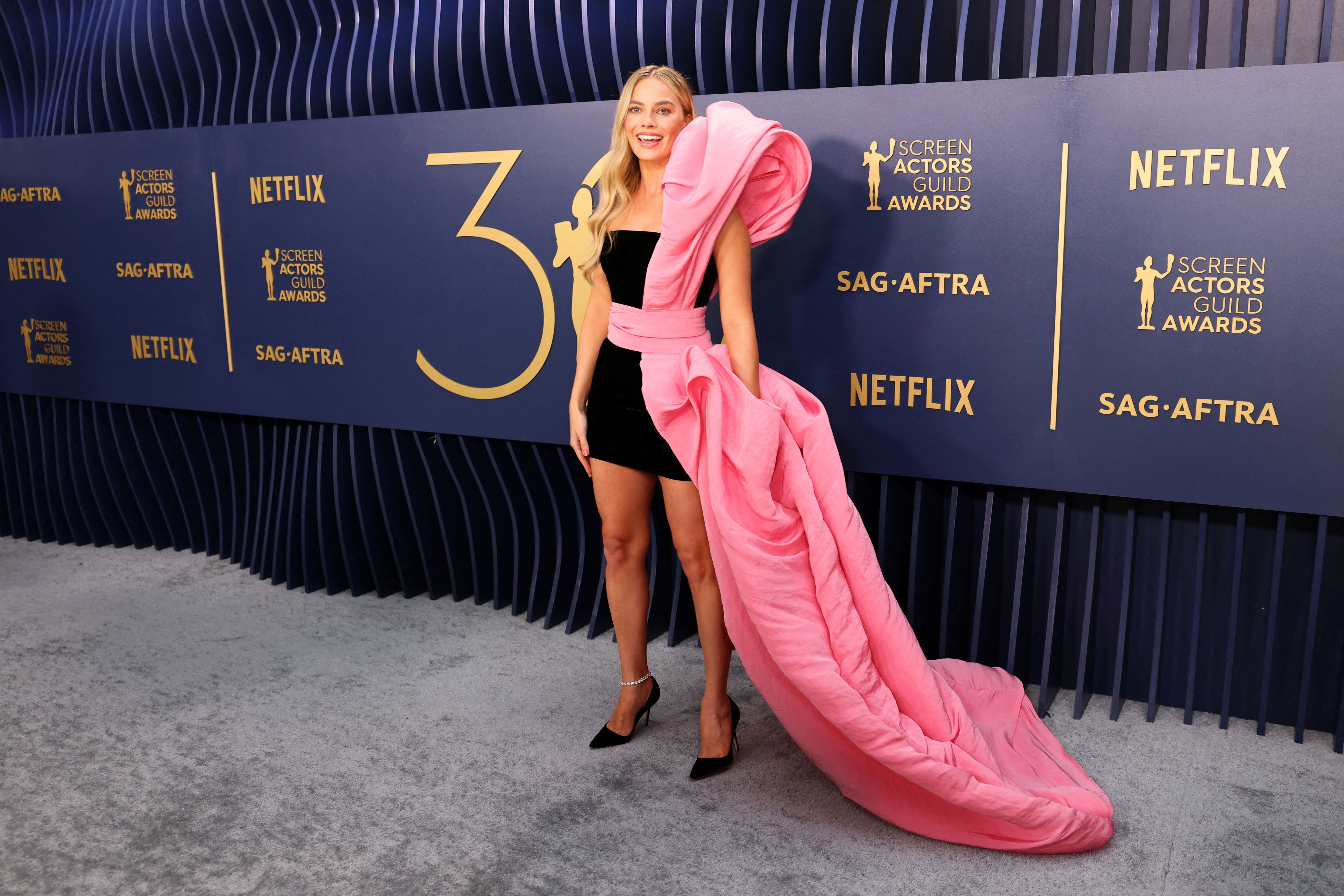 Australian actress Margot Robbie attends the 30th Screen Actors Guild Awards, in Los Angeles on February 24, 2024. (Photo by Mike Blake/Reuters)