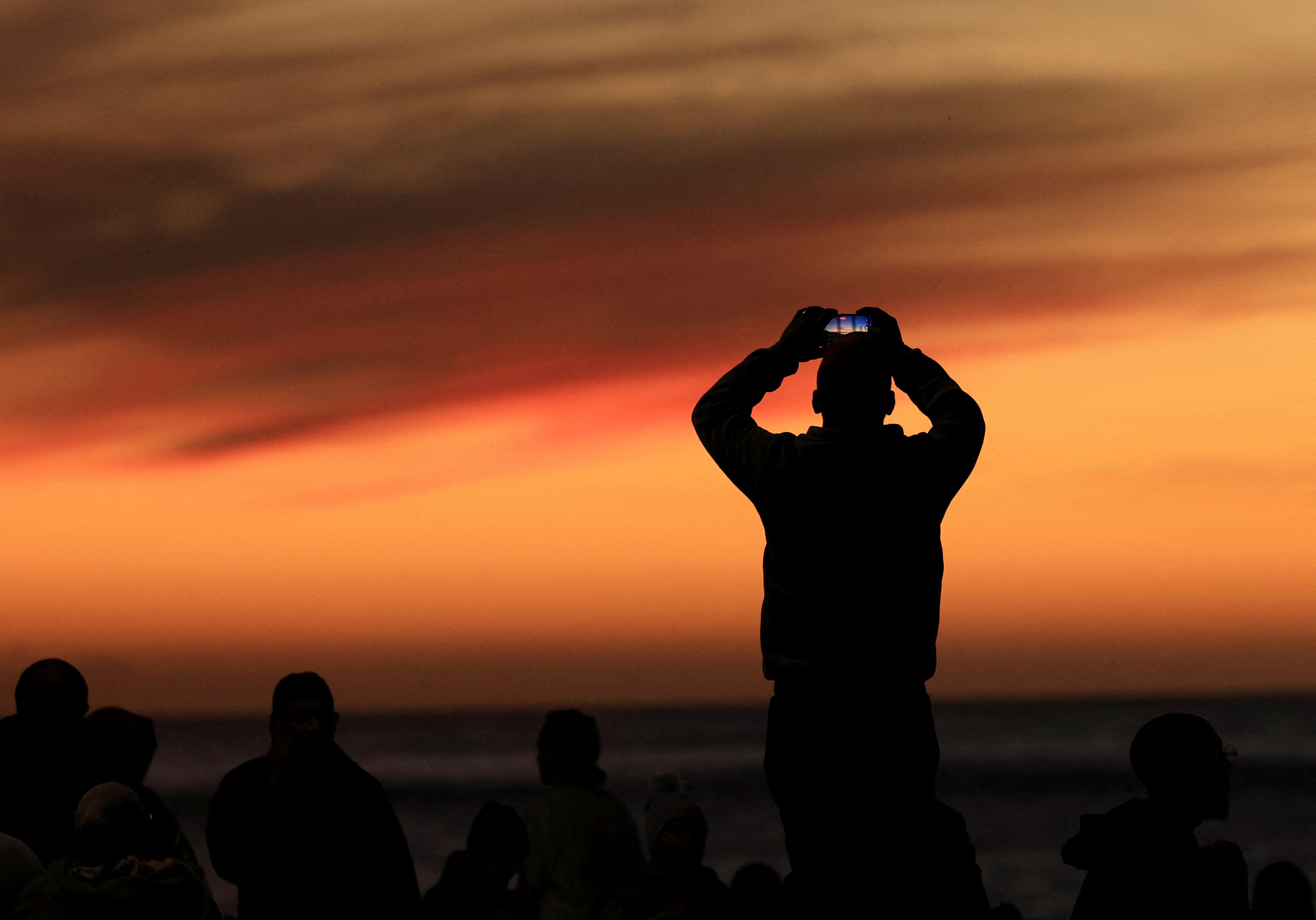 A man holds his phone while the sun sets, as people await for the sighting of the moon, ahead of Eid al-Fitr, marking the end of the Muslim holy month of Ramadan, in Cape Town, South Africa, on March 30, 2025. (Photo by Esa Alexander/Reuters)