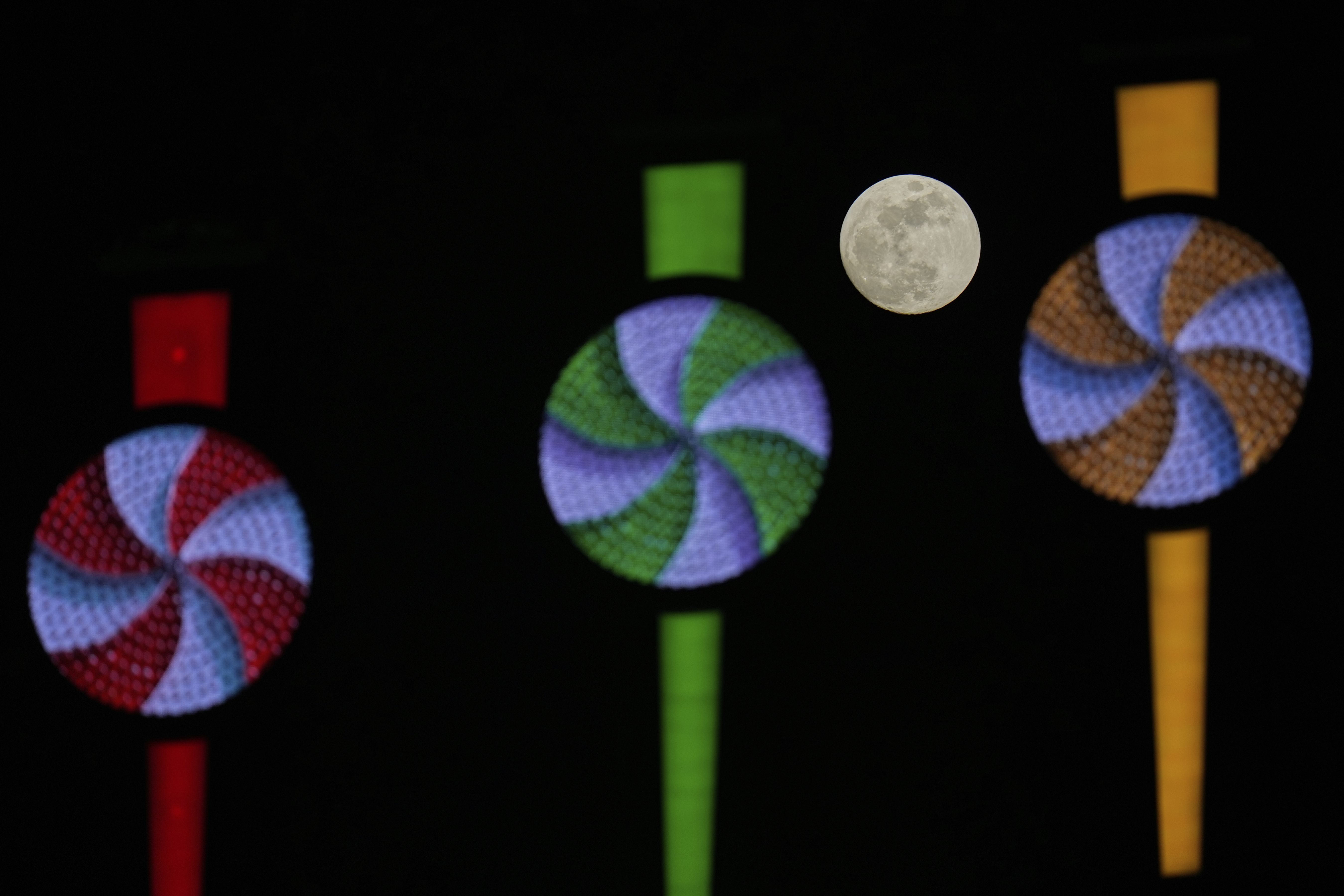 A nearly full moon rises over Rate Field during a baseball game between the Boston Red Sox and Chicago White Sox, Friday, April 11, 2025, in Chicago. (Photo by Erin Hooley/AP Photo)