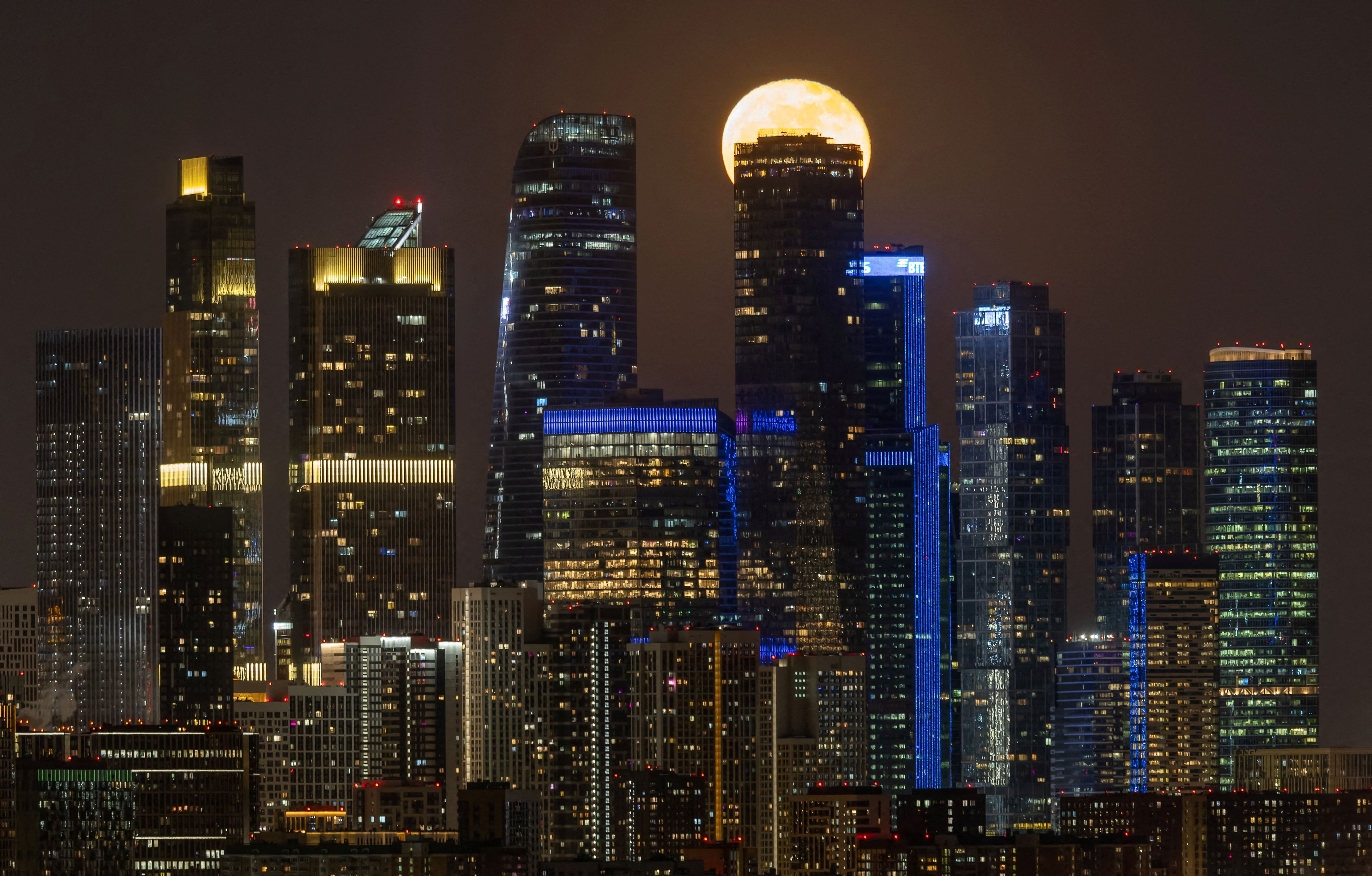The moon rises behind a skyscraper of the Moscow International Business Centre in the city of Moscow, Russia on March 15, 2025. (Photo by Marina Lystseva/Reuters)