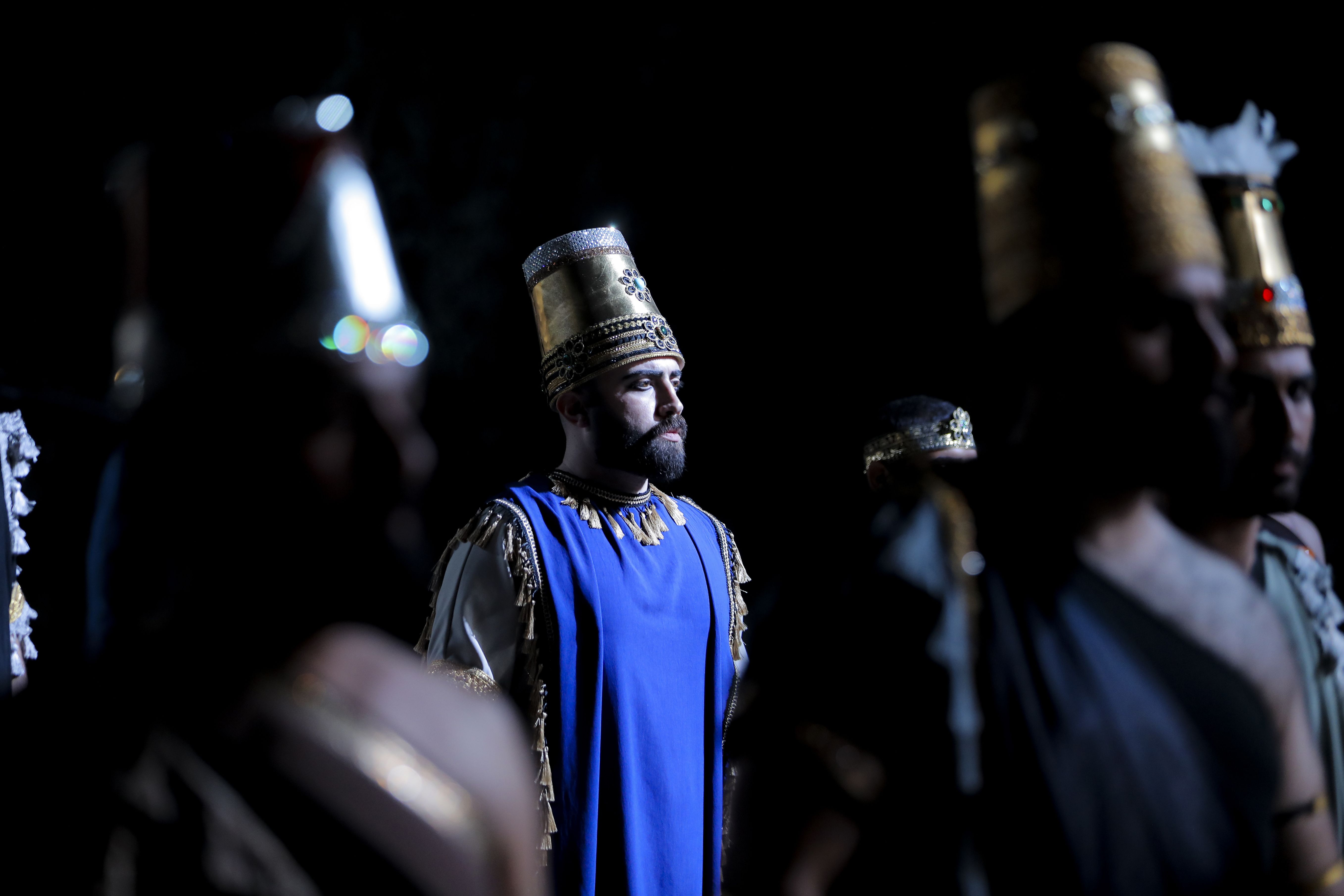 Actors perform during the opening ceremony for the International Day for the Babylonian Civilization held in the archaeological site of Babylon, Iraq, Thursday, April 10, 2025. (Photo by Anmar Khalil/AP Photo)