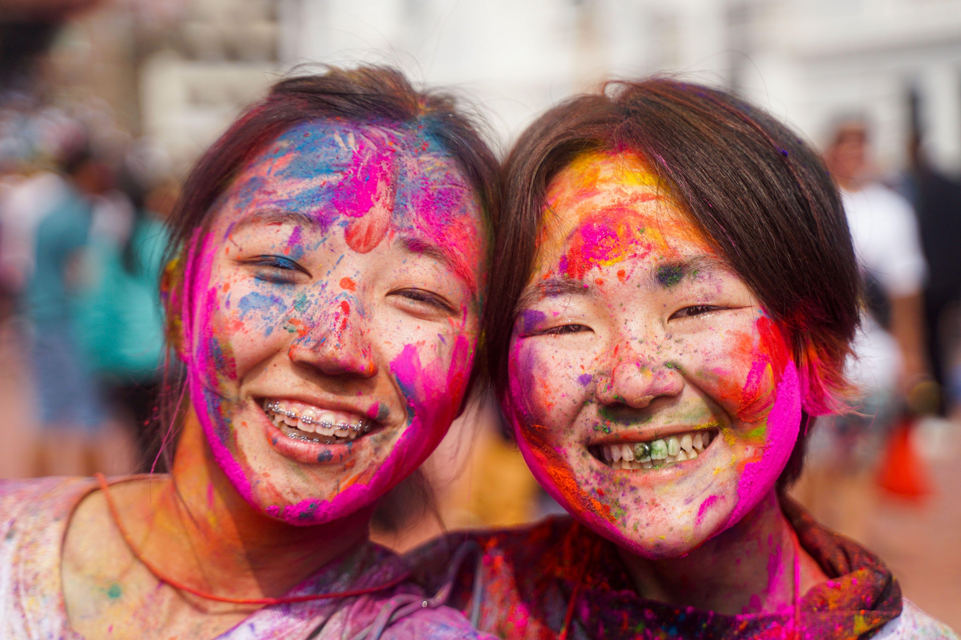 Tourist revelers with vermillion colors on their face as they celebrates Fagu Purnima also known as “Holi” or the carnival of colors in Kathmandu, Nepal on March 13, 2025. (Photo by Sujal Bajracharya/ZUMA Press Wire/Alamy Live News)