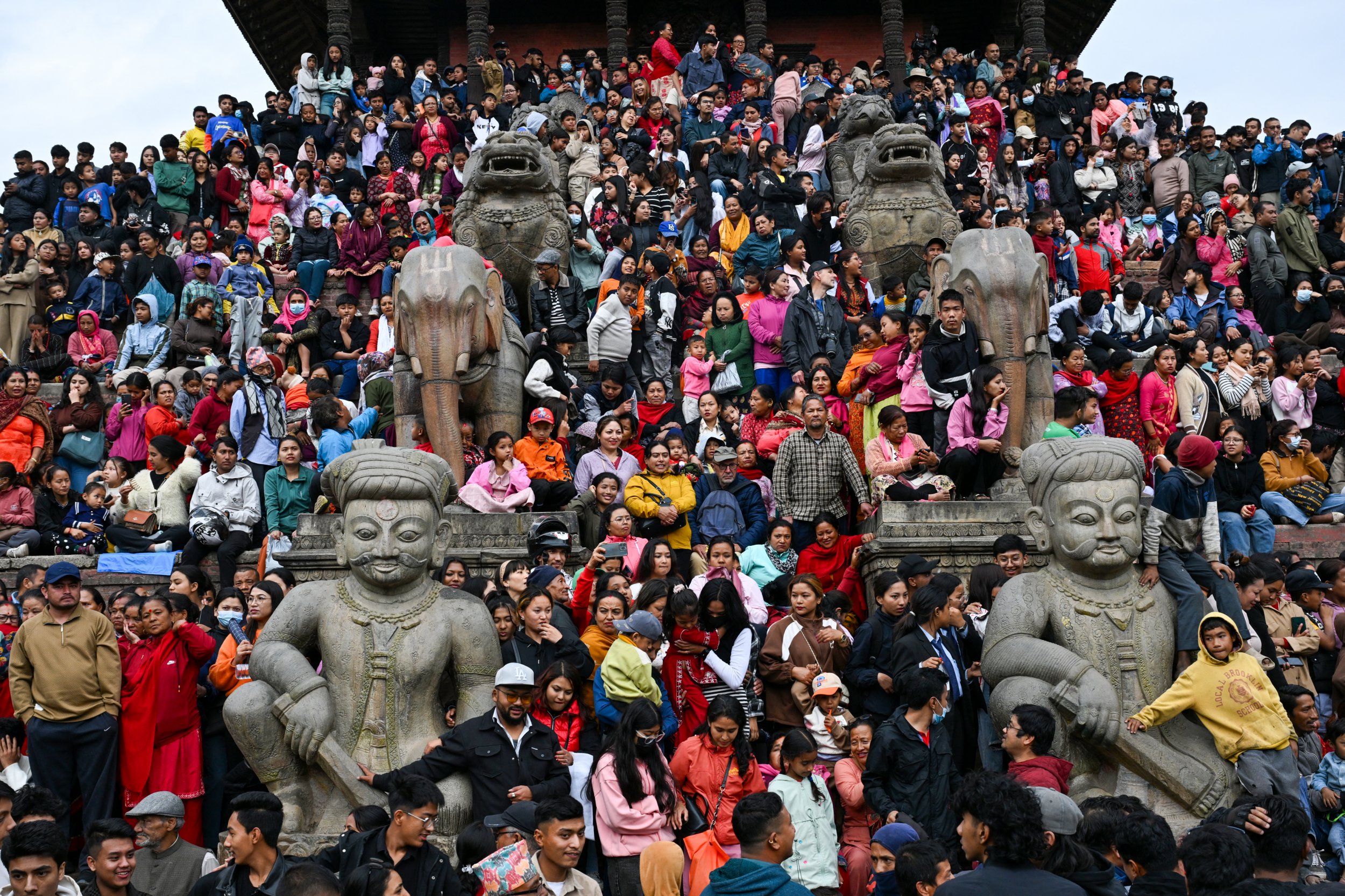 Hindu devotees attend “Bisket Jatra” festival to mark the Nepali New Year, in Bhaktapur, on the outskirts of Kathmandu, on April 10, 2025. (Photo by Prakash Mathema/AFP Photo)