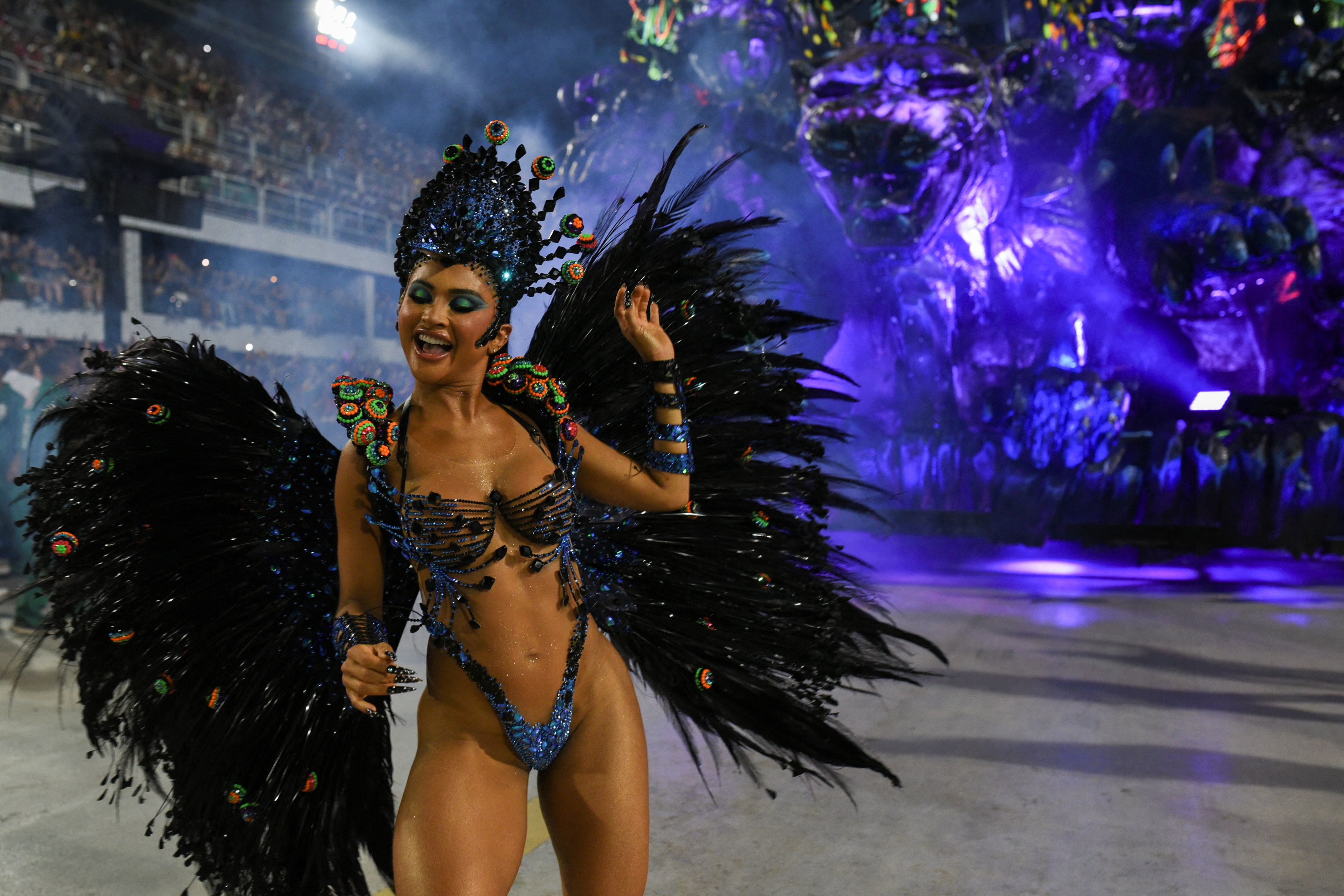 Revelers from Grande Rio Samba School perform during the night of the Carnival parade at the Sambadrome, in Rio de Janeiro, Brazil, on February 12, 2024. (Photo by Tita Barros/Reuters)