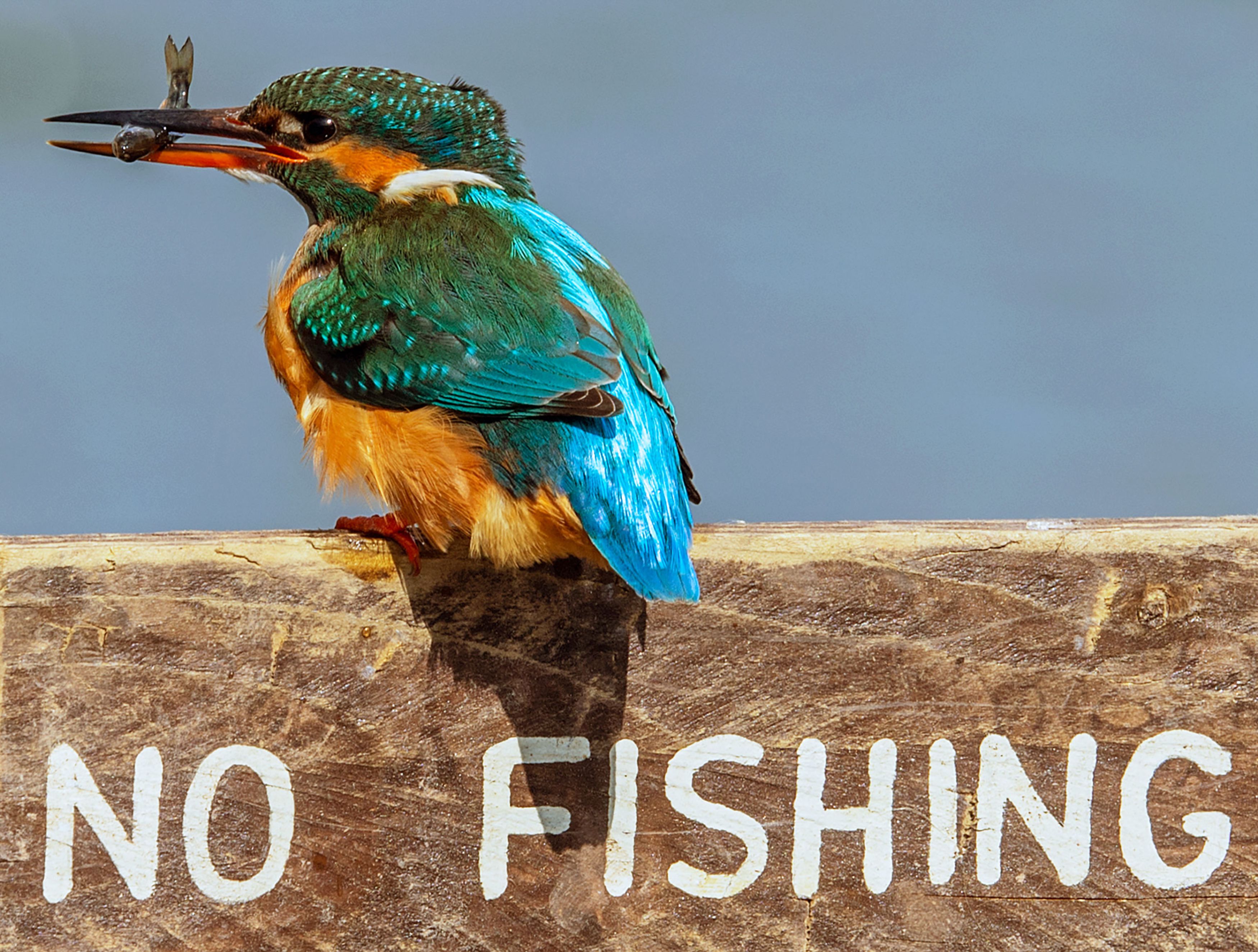 A kingfisher ignores the “no fishing” sign after catching food at Teddesley Park in Staffordshire, England, on Saturday, April 5, 2025. (Photo by Stuart Brock/Anadolu/Getty Images)