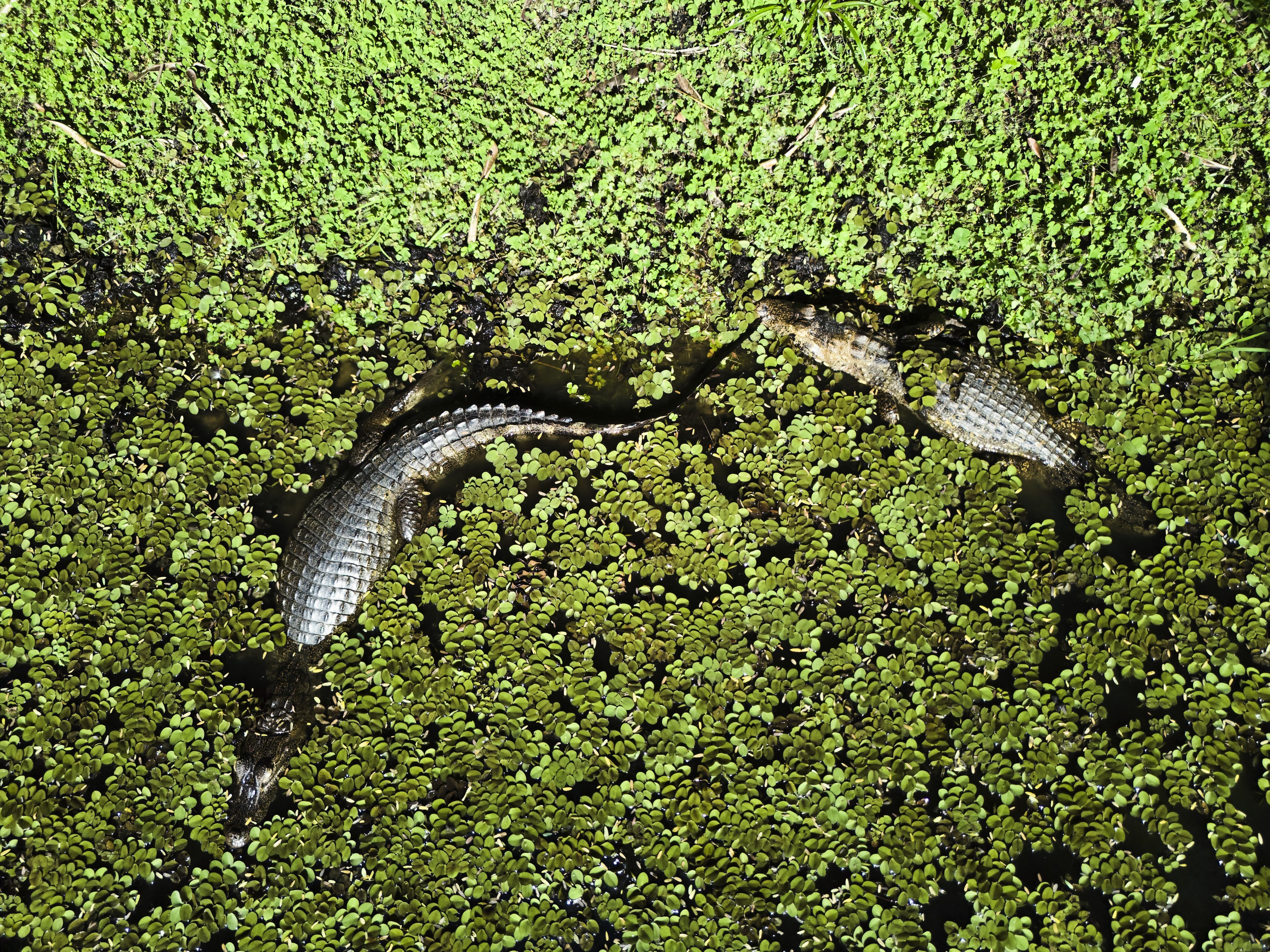 Yacare, a kind of caiman, sunbathe in the water at Botanical Park in Asuncion, Paraguay, Wednesday, April 16, 2025. (Photo by Jorge Saenz/AP Photo)