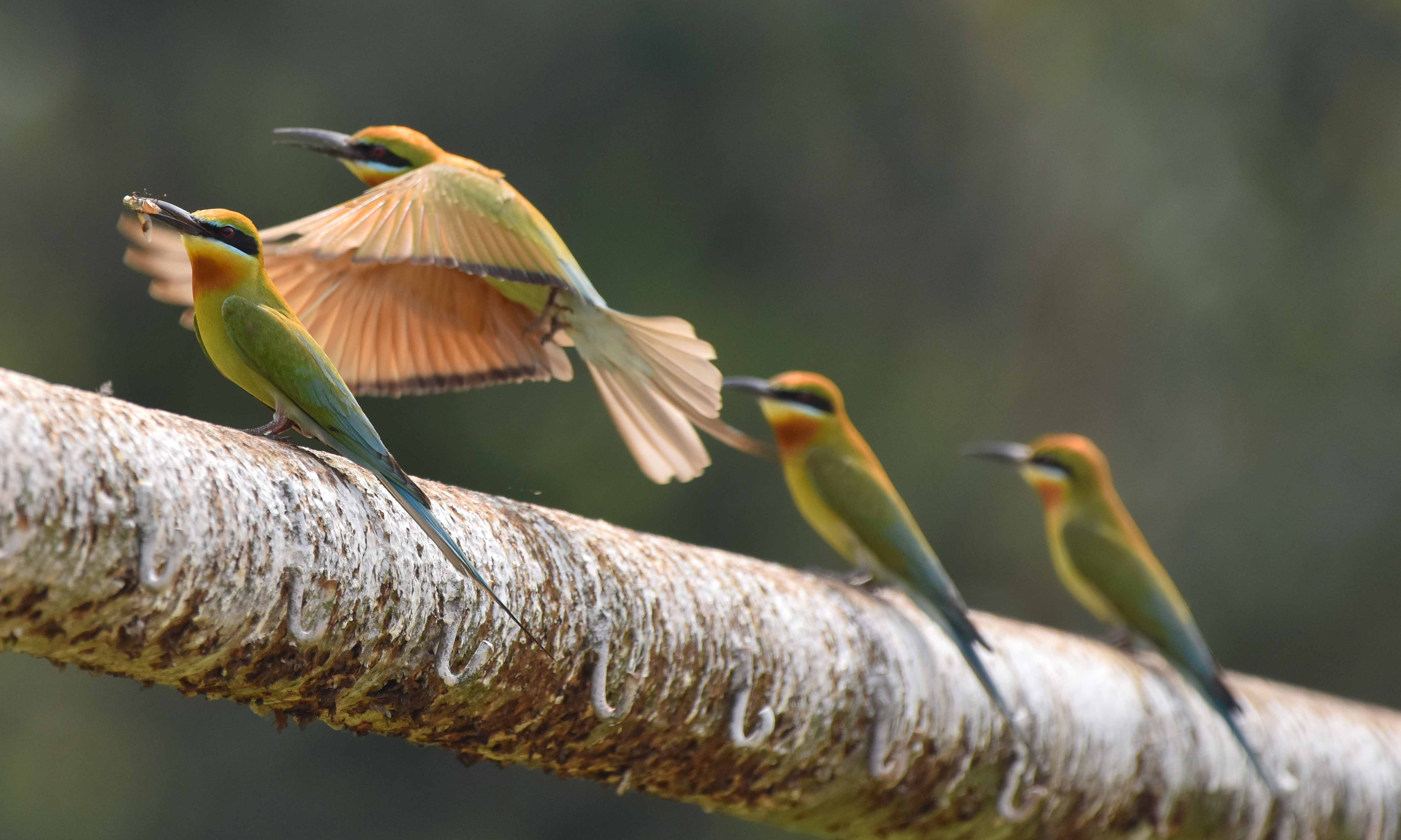 A group of bee-eaters is seen in a village in Nagaon District, Assam, India, on April 14, 2025. (Photo by Anuwar Hazarika/NurPhoto via Getty Images)