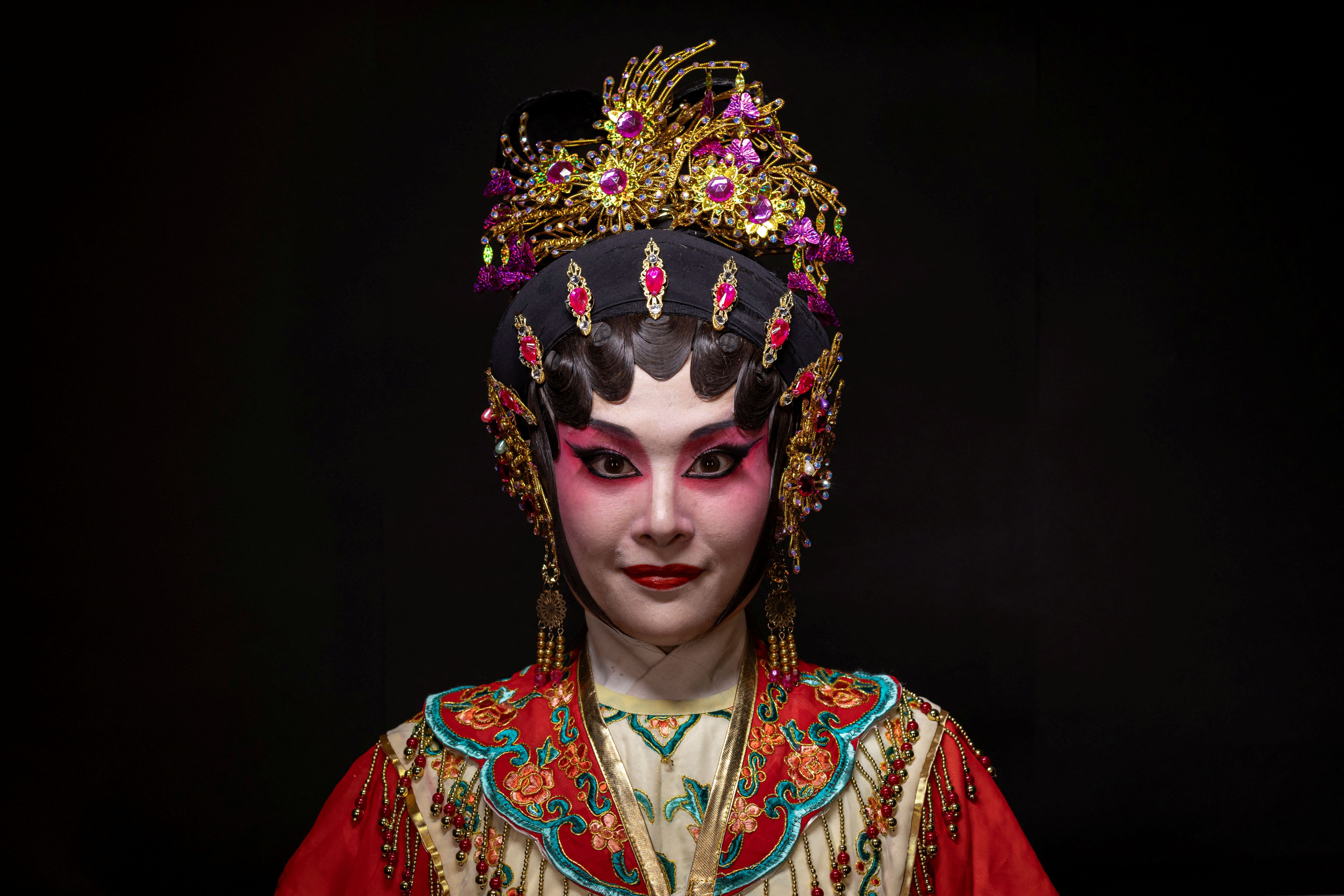 Rika Woo, 31, a Cantonese opera performer and a captain of an underground J-pop style idol group, poses for photos dressed in traditional Cantonese opera attire in Hong Kong, China on September 17, 2024. (Photo by Tyrone Siu/Reuters)