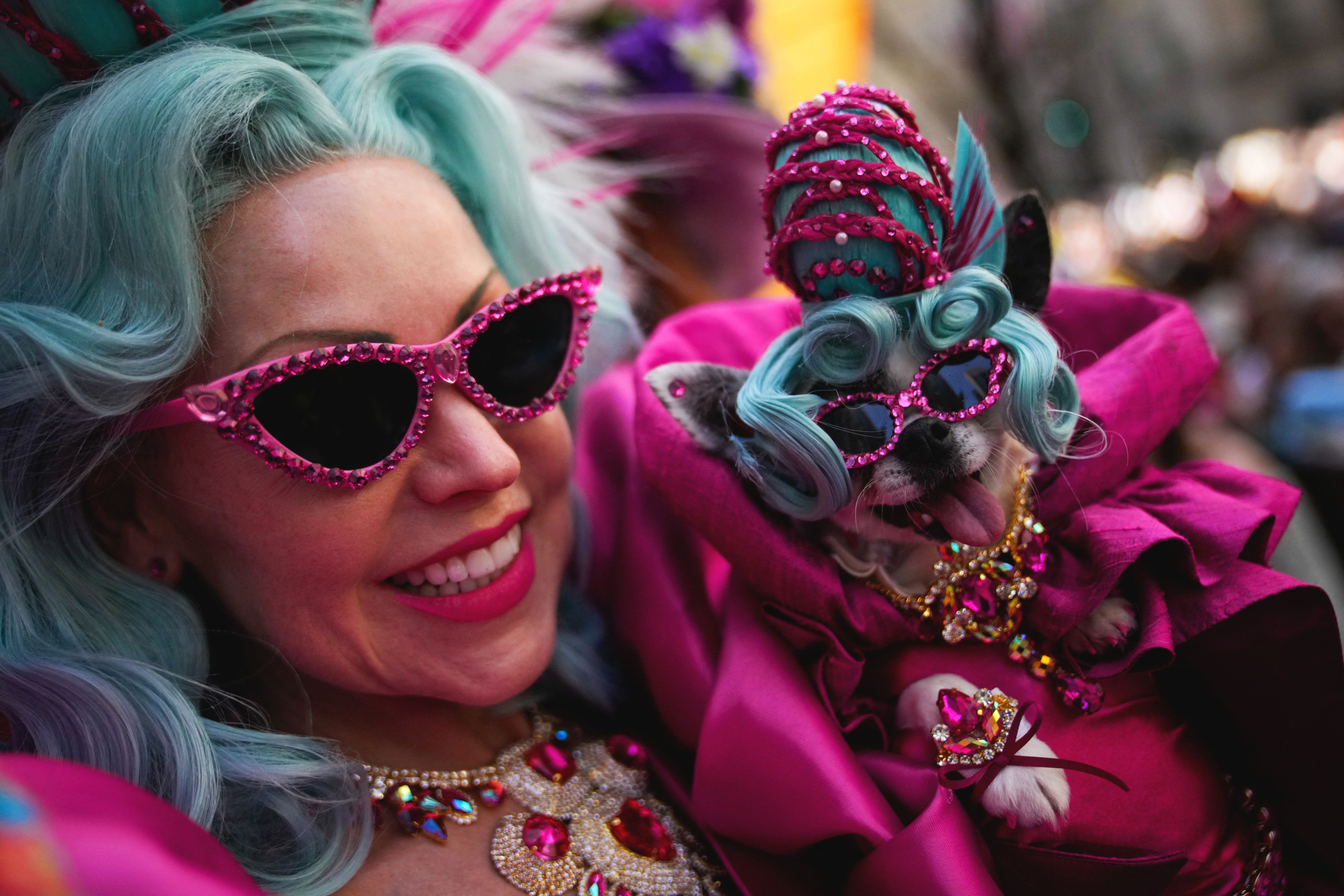 A woman and her dog take part in the annual Easter Parade and Bonnet Festival on 5th Avenue outside St. Patrick's Cathedral in Manhattan in New York City, U.S., April 20, 2025. (Photo by Eduardo Muñoz/Reuters)