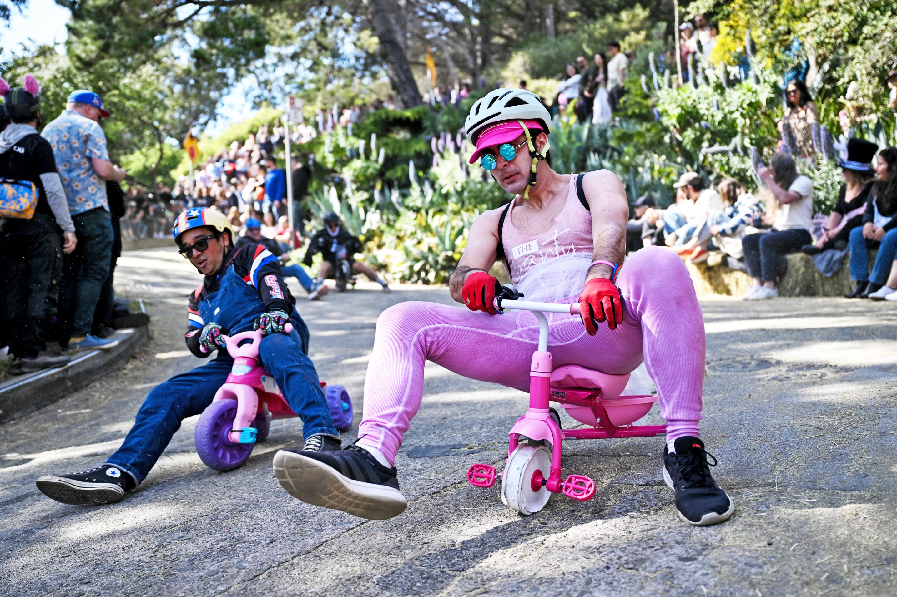 Dozens of contestants attend the “Bring Your Own Big Wheel” Race on Easter Sunday at Potrero Hill in San Francisco, California, United States on April 20, 2025. (Photo by Tayfun Coskun/Anadolu via Getty Images)
