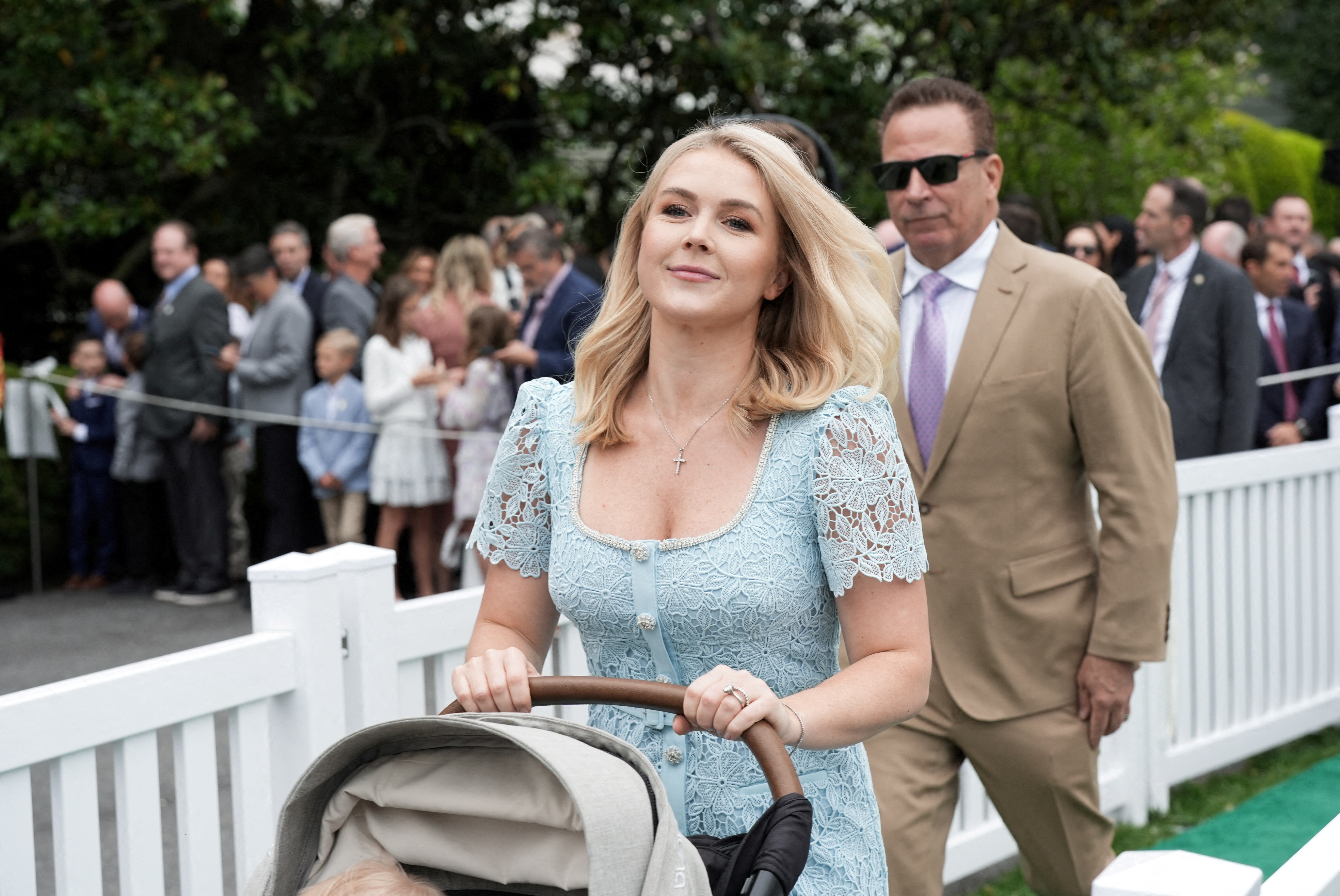 White House Press Secretary Karoline Leavitt and her husband Nicholas Riccio attend the annual White House Easter Egg Roll event, on April 21, 2025. (Photo by Ken Cedeno/Reuters)