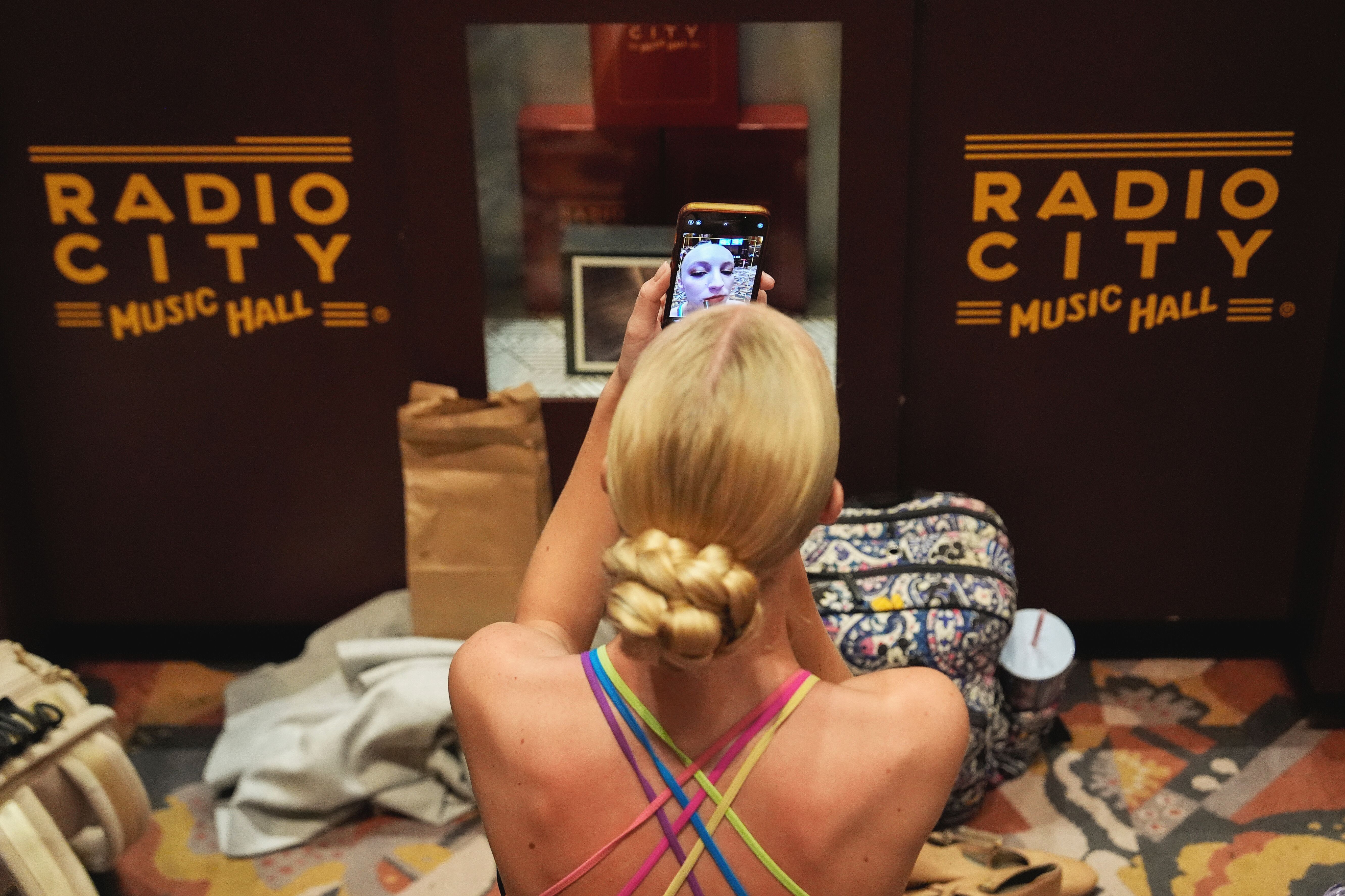 A dancer applies make up before an audition for the Radio City Rockettes at Radio City Music Hall, Tuesday, April 22, 2025, in New York. (Photo by Julia Demaree Nikhinson/AP Photo)