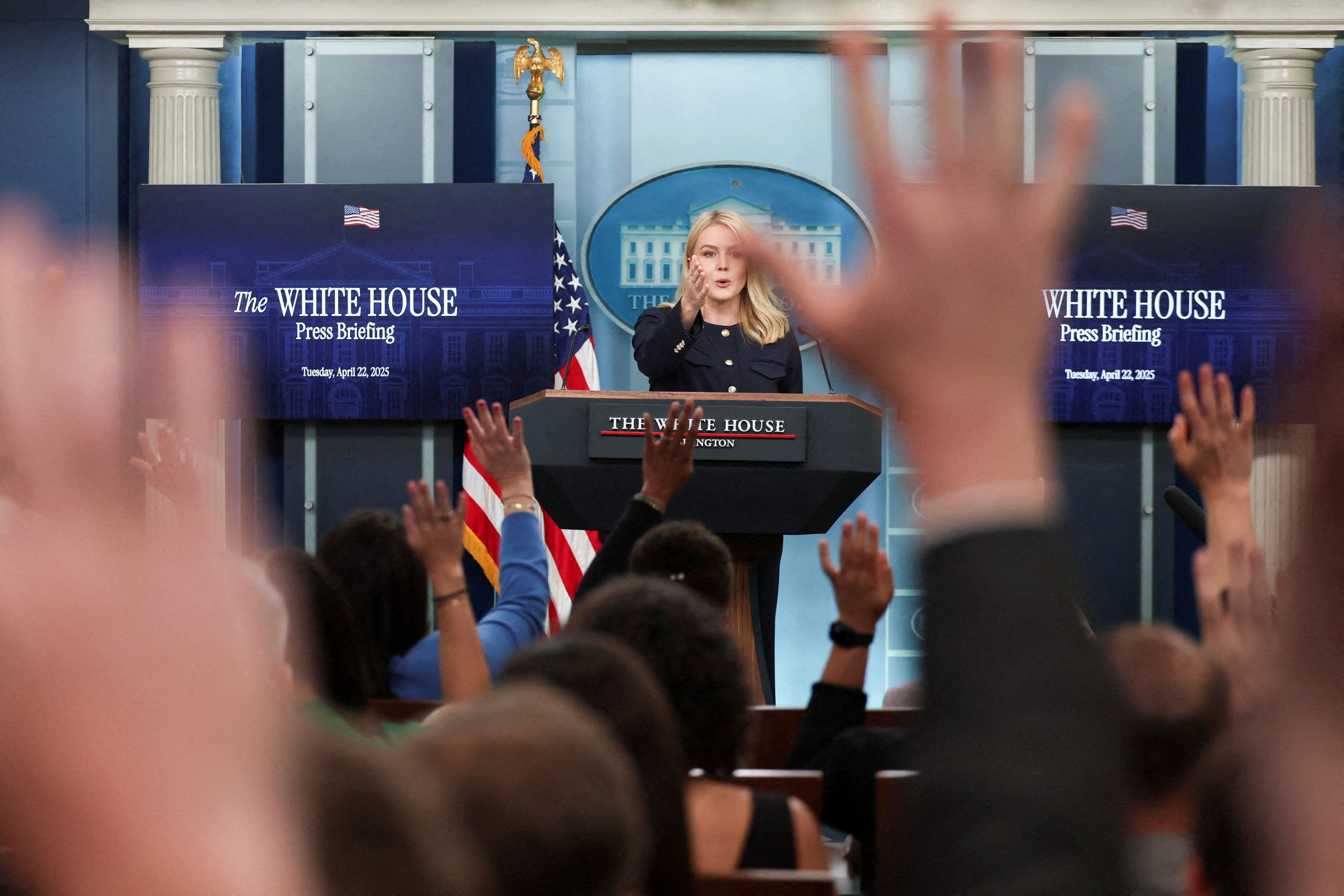 White House Press Secretary Karoline Leavitt takes a question during a press briefing at the White House in Washington on April 22, 2025. (Photo by Leah Millis/Reuters)