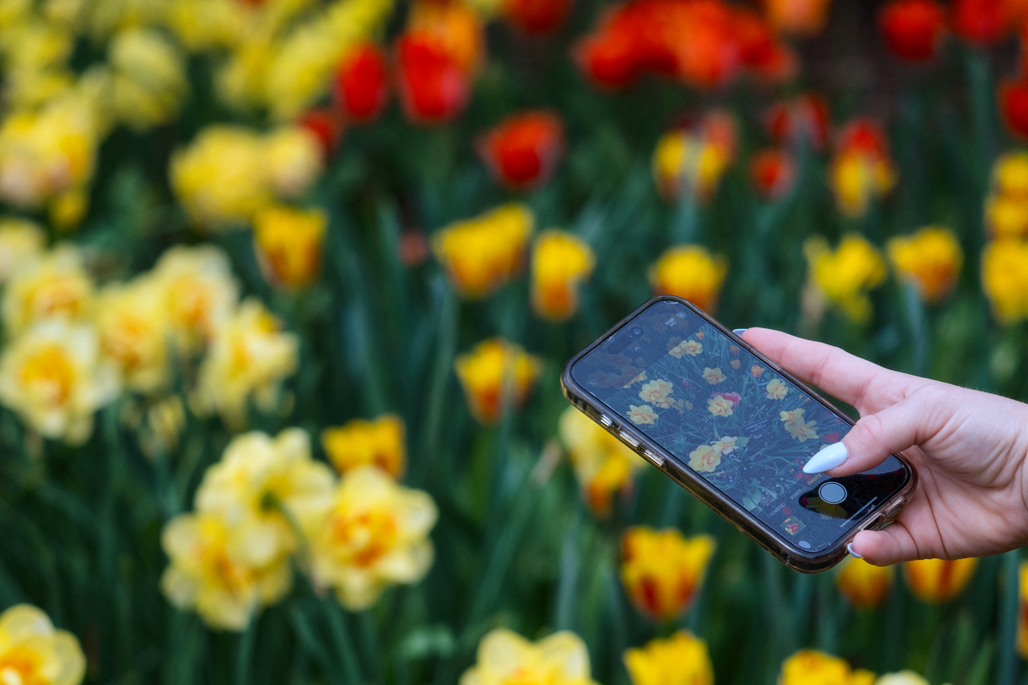 A woman takes a photo of daffodils at Longwood Gardens in Kennett Square, Pennsylvania, on April 19, 2025, during the Easter holiday Spring Blossoms event. (Photo by Jim Watson/AFP Photo)