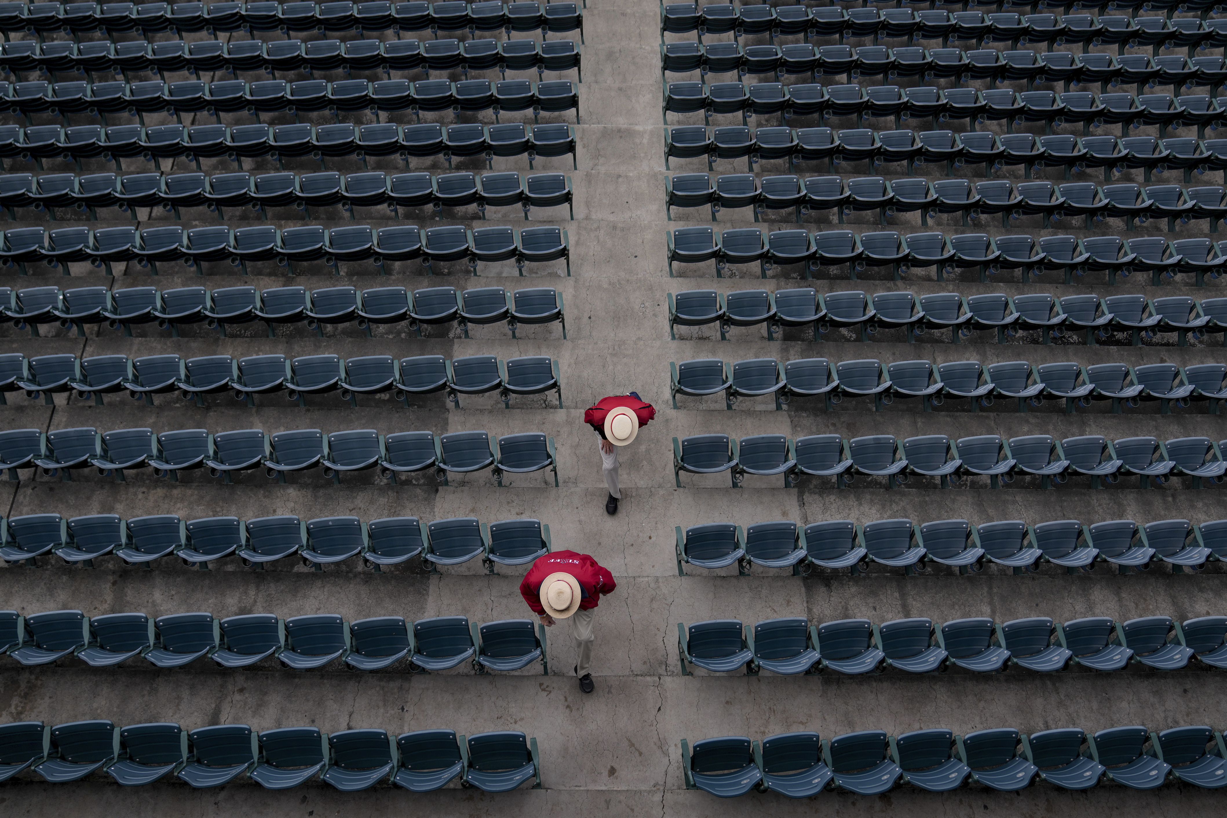 Stadium ushers walk through seats before a baseball game between the Pittsburgh Pirates and the Los Angeles Angels in Anaheim, Calif., Wednesday, April 23, 2025. (Photo by Eric Thayer/AP Photo)