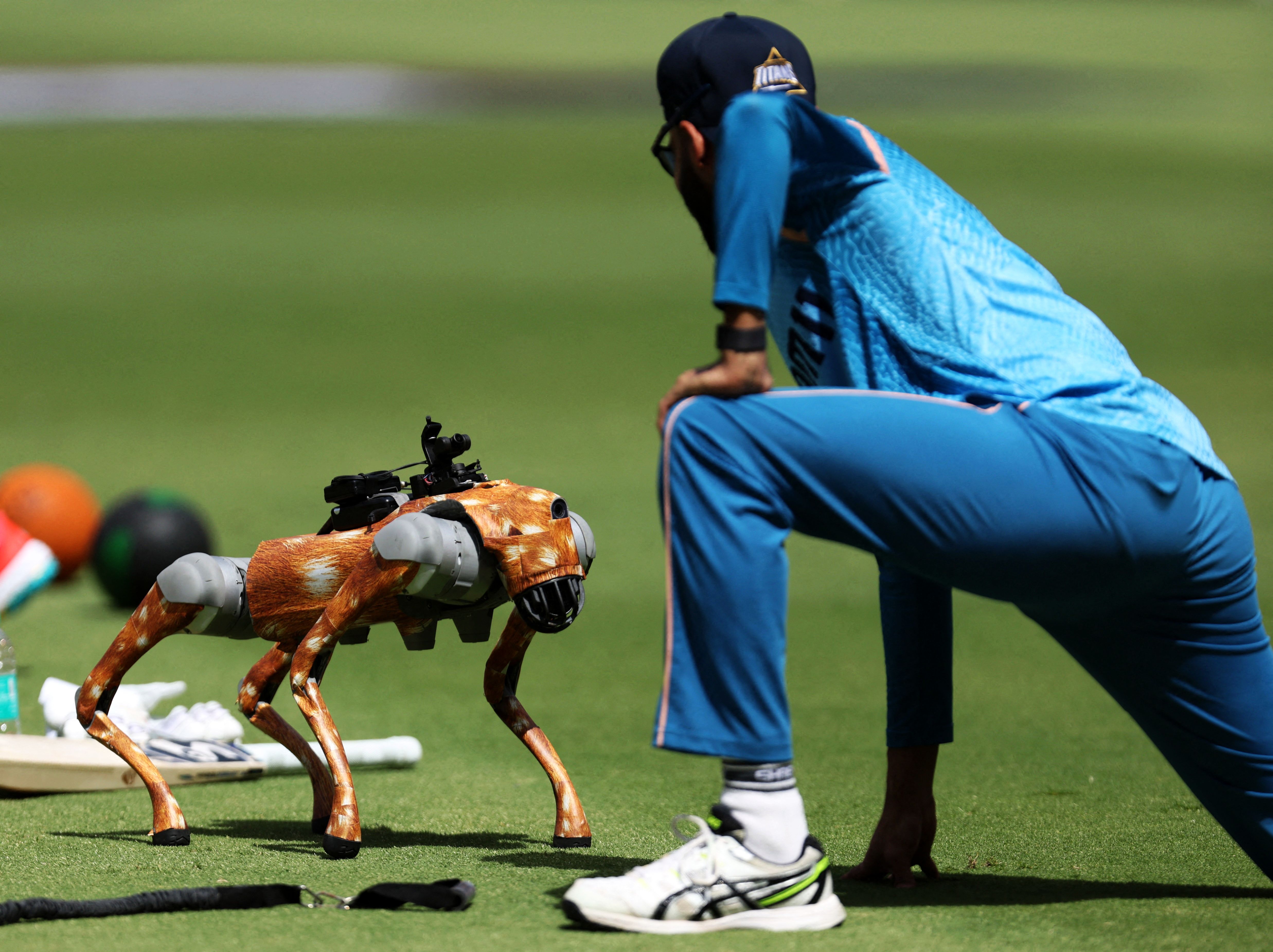 A robot dog is seen before the Gujarat Titans versus Delhi Capitals match in the Indian Premier League in Ahmedabad, India on April 19, 2025. (Photo by Amit Dave/Reuters)