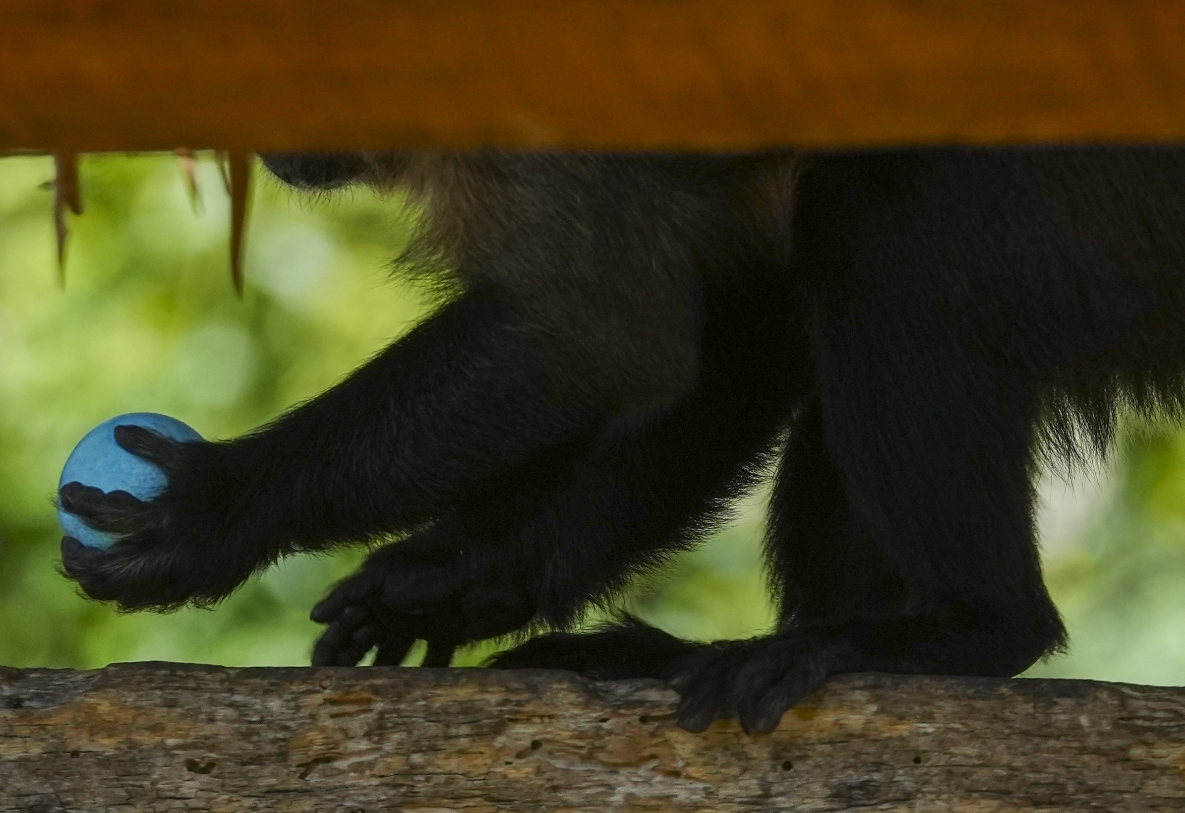 A monkey holds an Easter egg given to him by staff at the Buinzoo in Santiago, Chile, Sunday, April 20, 2025. (Photo by Esteban Felix/AP Photo)