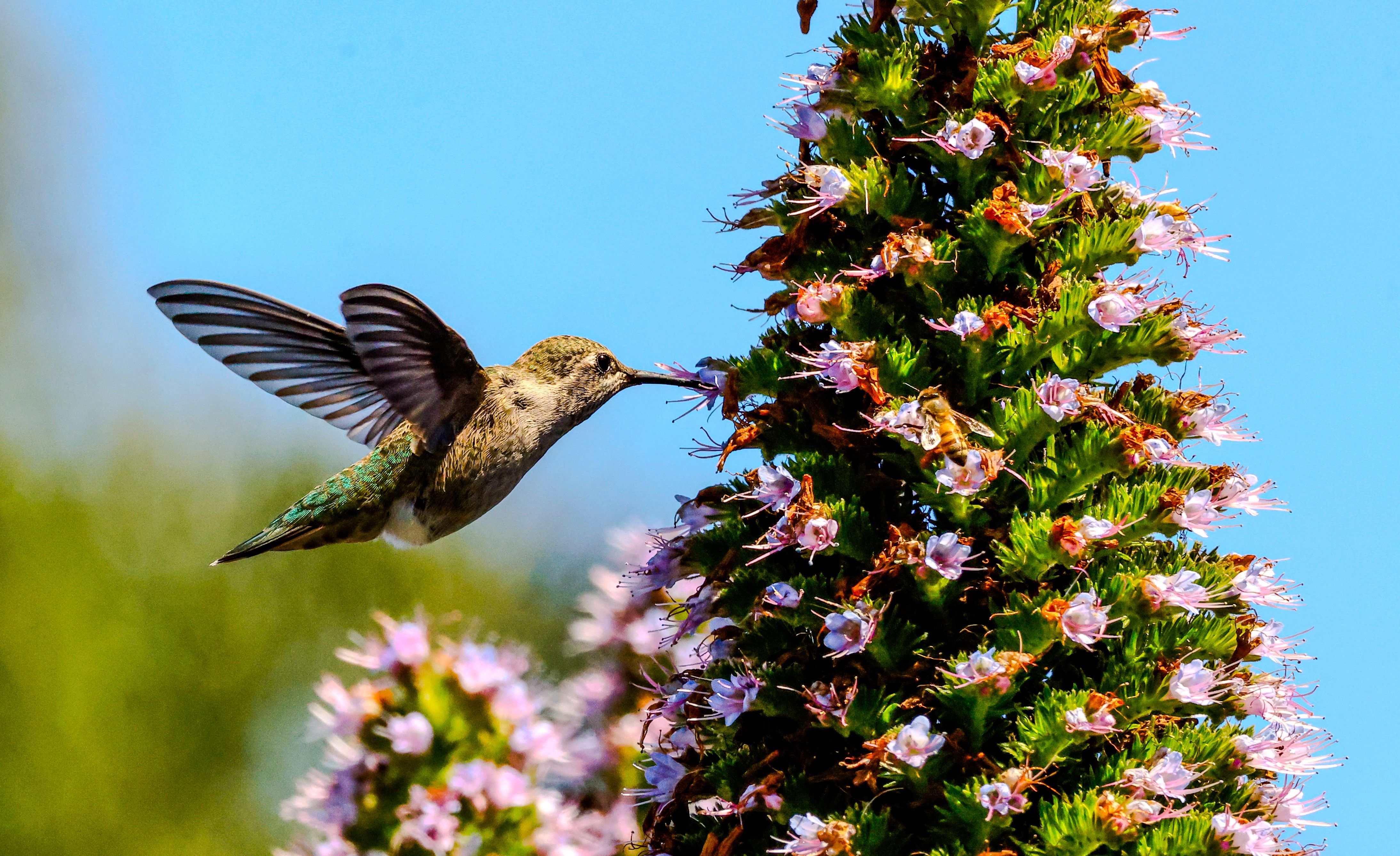 Hummingbird on a Hope Ranch estate in Santa Barbara, Ca sipping nectar from the violet flowers called Pride of Madeira on April 27, 2025. (Photo by Amy Katz/ZUMA Press Wire/Rex Features/Shutterstock)