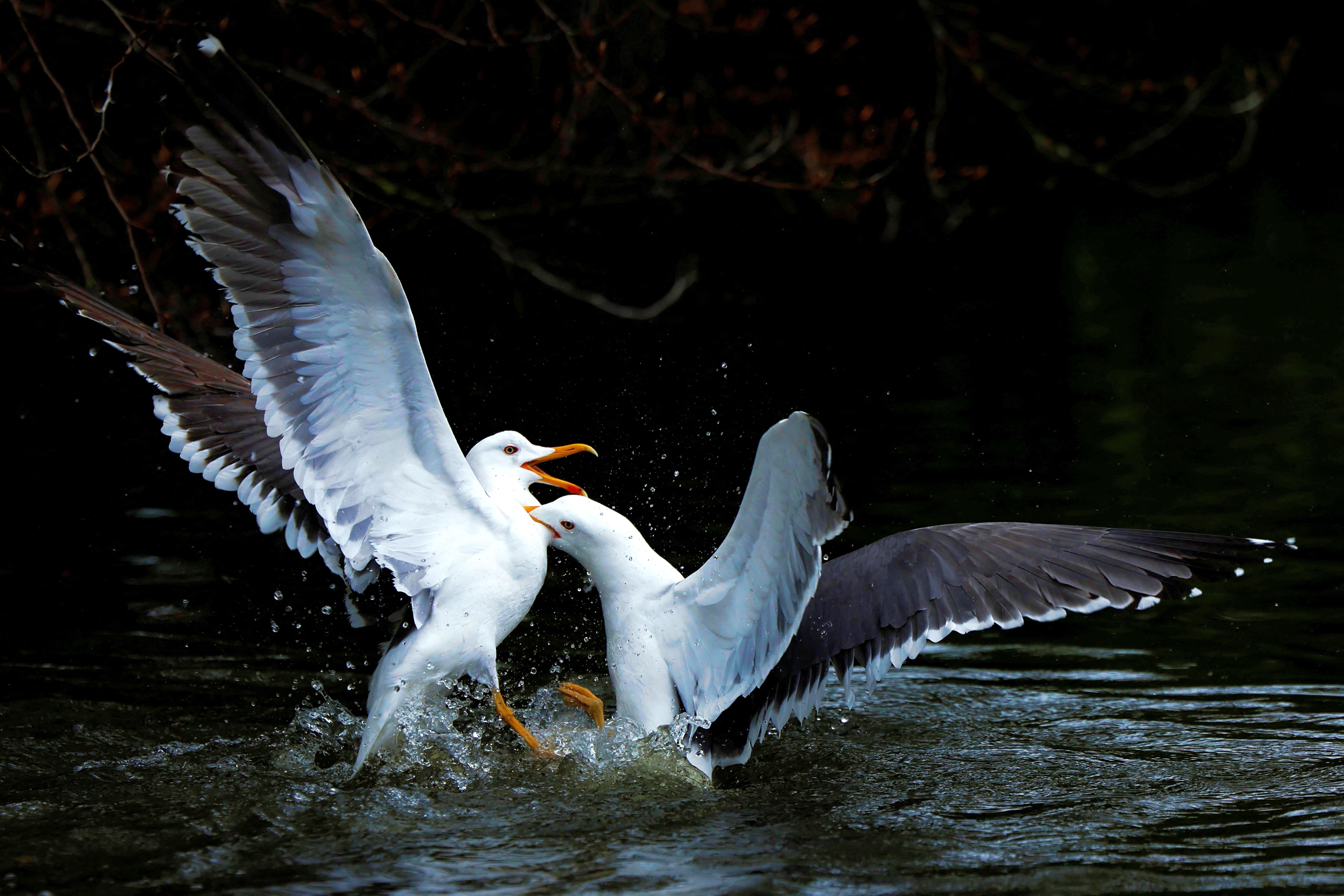 Seagulls fight in a pond at St. Stephen's Green, in Dublin, Ireland, on April 19, 2025. (Photo by Clodagh Kilcoyne/Reuters)