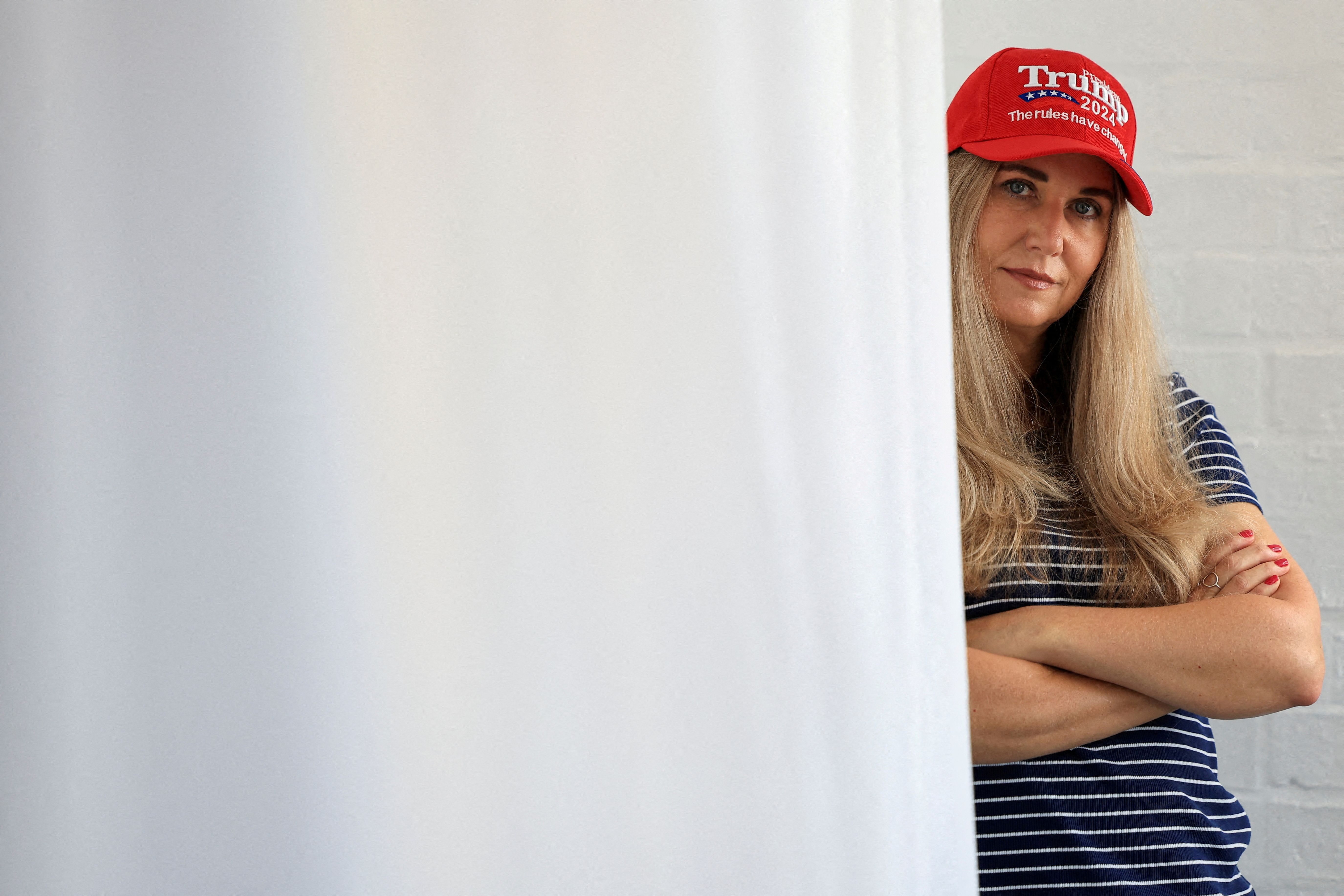 Katia Beeden, life coach and campaigner for white South Africans who want to apply for U.S. refugee status, poses for a photograph at her residence in Fish Hoek, Cape Town, South Africa on April 24, 2025. (Photo by Esa Alexander/Reuters)