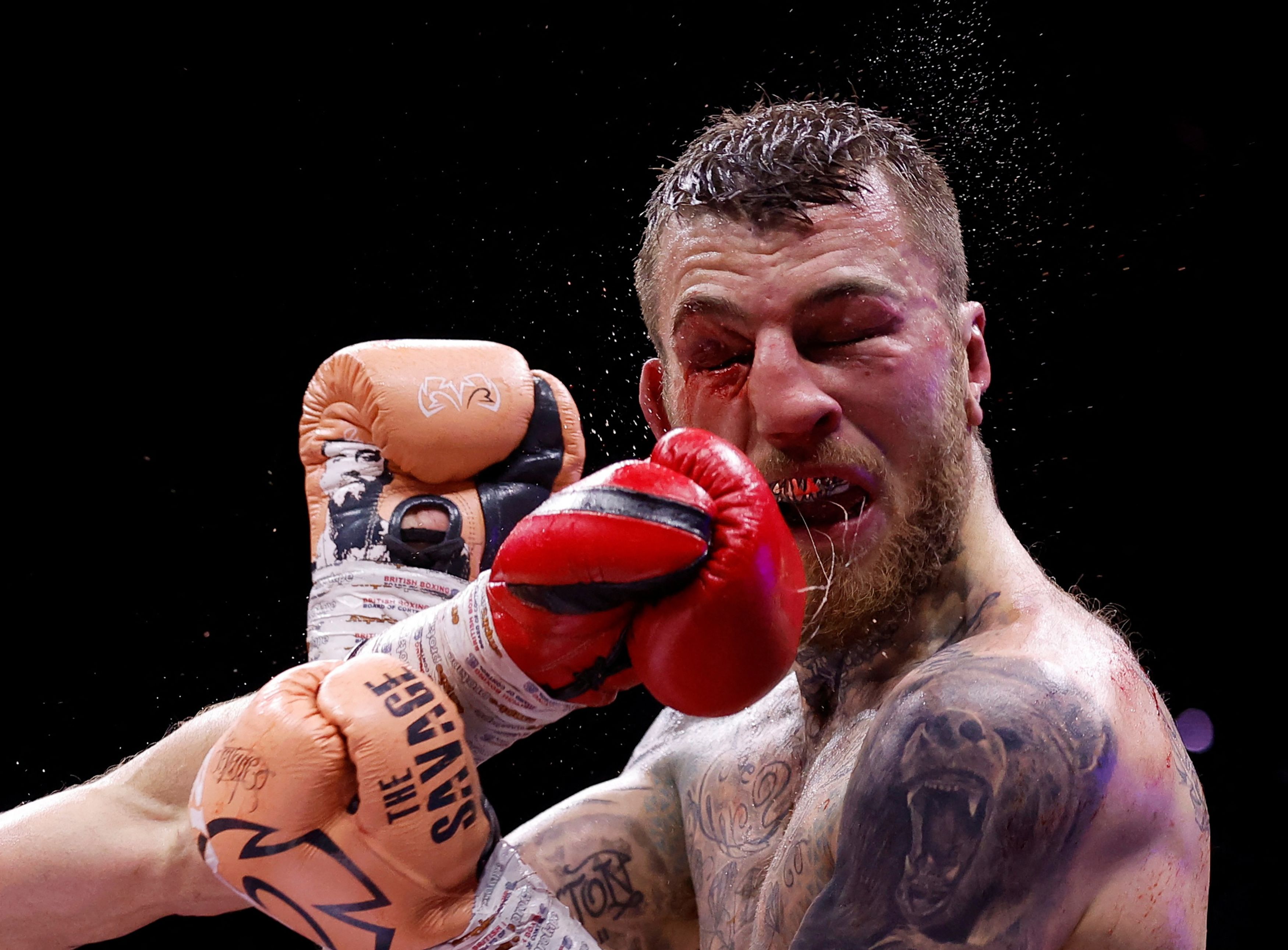 Boxer Sam Eggington is punched by Lee Cutler during their welterweight bout in Birmingham, England, on Sunday, April 20, 2025. Eggington went on to win by decision. (Photo by Andrew Couldridge/Reuters)