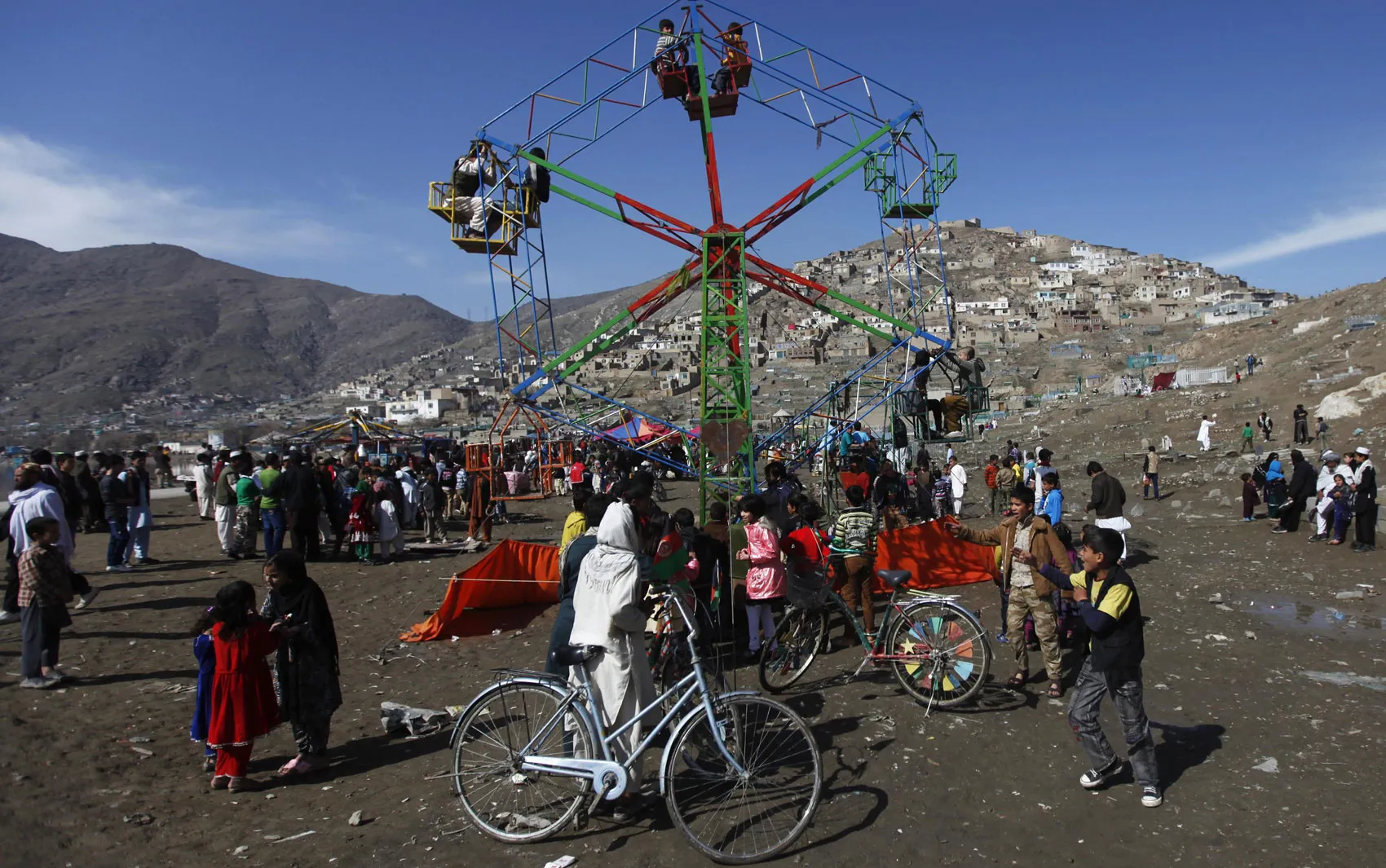 Afghan children play on a swing near the Sakhi shrine, the centre of the Afghanistan new year celebrations in Kabul during Nowruz festivities, on March 21, 2013. Nowruz, one of the biggest festivals of the war-scarred nation, marks the first day of spring and the beginning of the year in the Persian calendar. Nowruz is calculated according to a solar calendar, this coming year marking 1392. (Photo by Mohammad Ismail/Reuters)