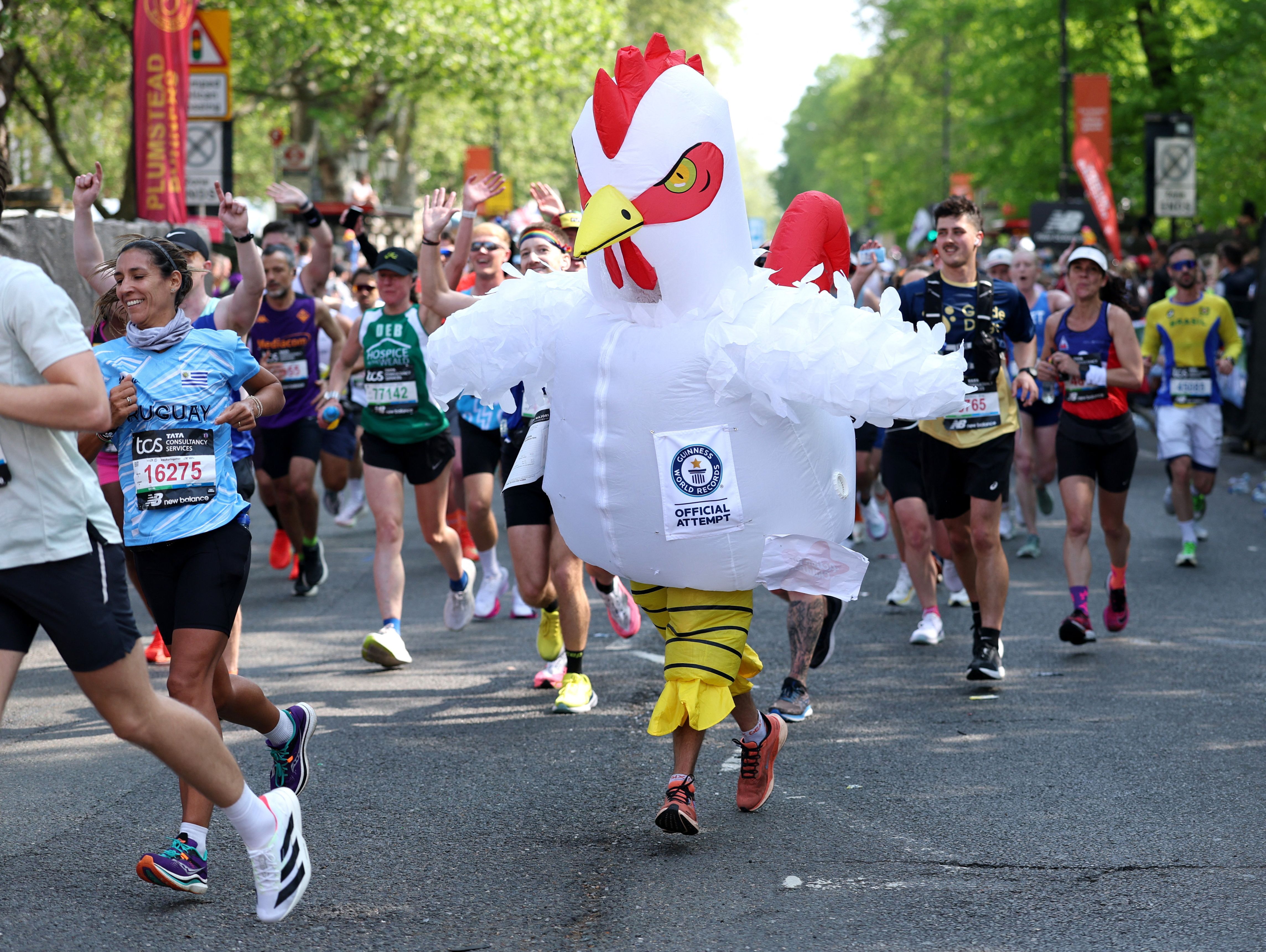 A runner in fancy dress attempts a record in the TCS London Marathon on Sunday, April 27, 2025. (Photo by John Sibley/Action Images via Reuters)