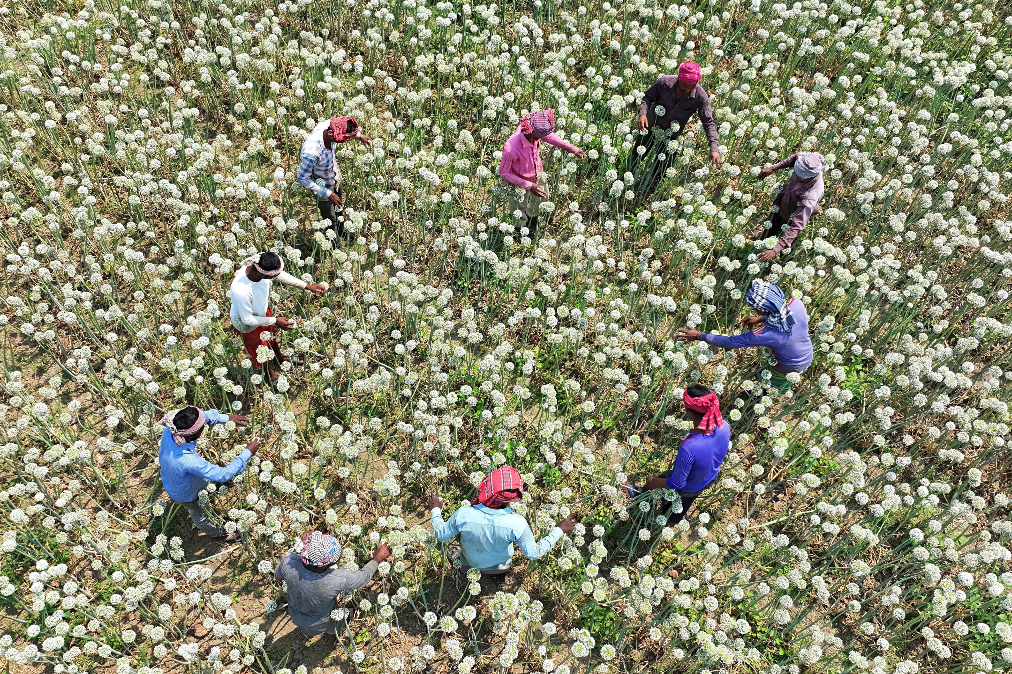 Farmers in Faridpur, Bangladesh, on march 16, 2025, take care of onion seeds planted across 1,854 hectares of land to meet local demand. (Photo by Pinu Rahman/NurPhoto/Rex Features/Shutterstock)