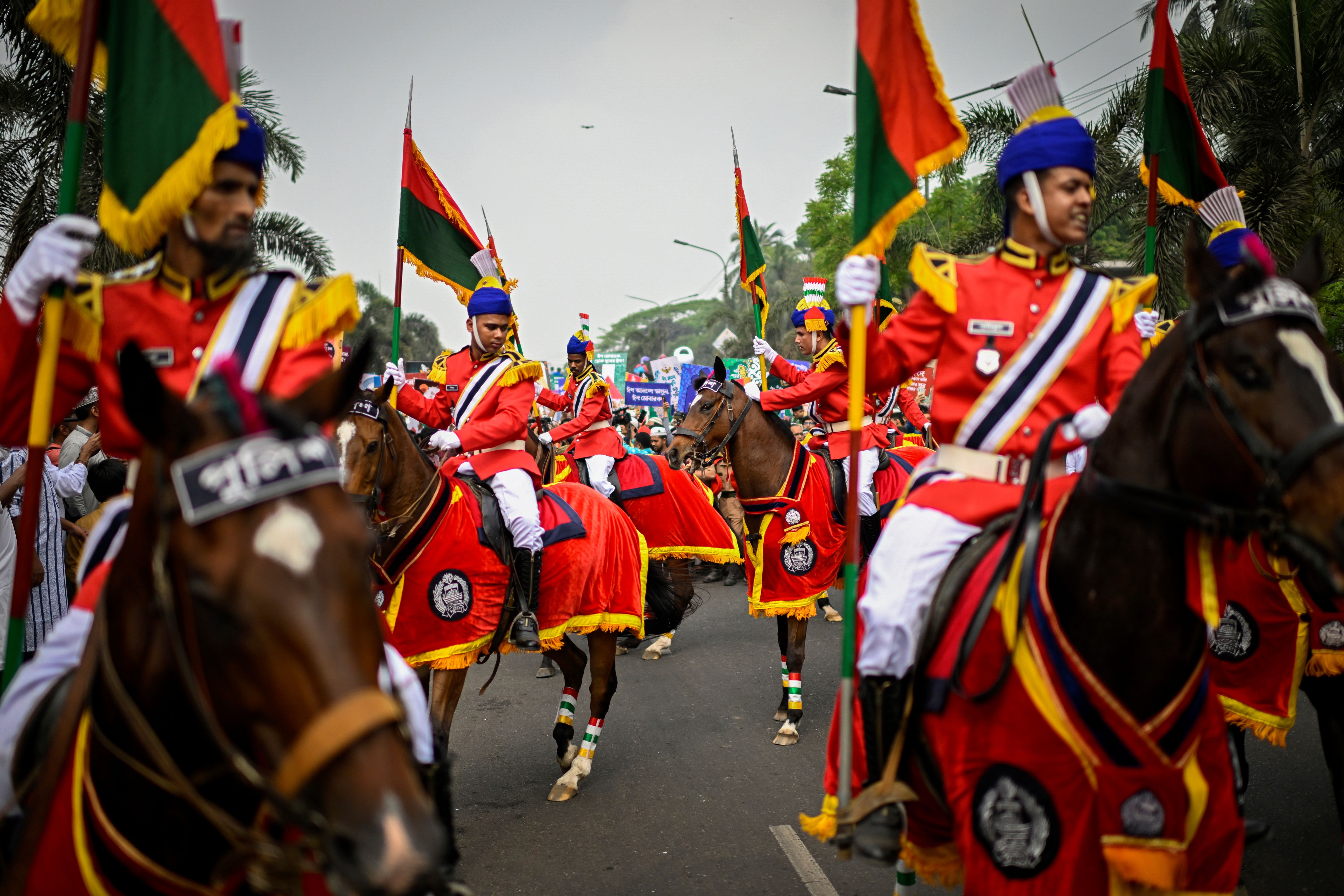 Adorned horses take part in the Eid Joy procession at Sher-e-Bangla Nagar in Dhaka, Bangladesh, on Monday, March 31, 2025. (Photo by Mahmud Hossain Opu/AP Photo)